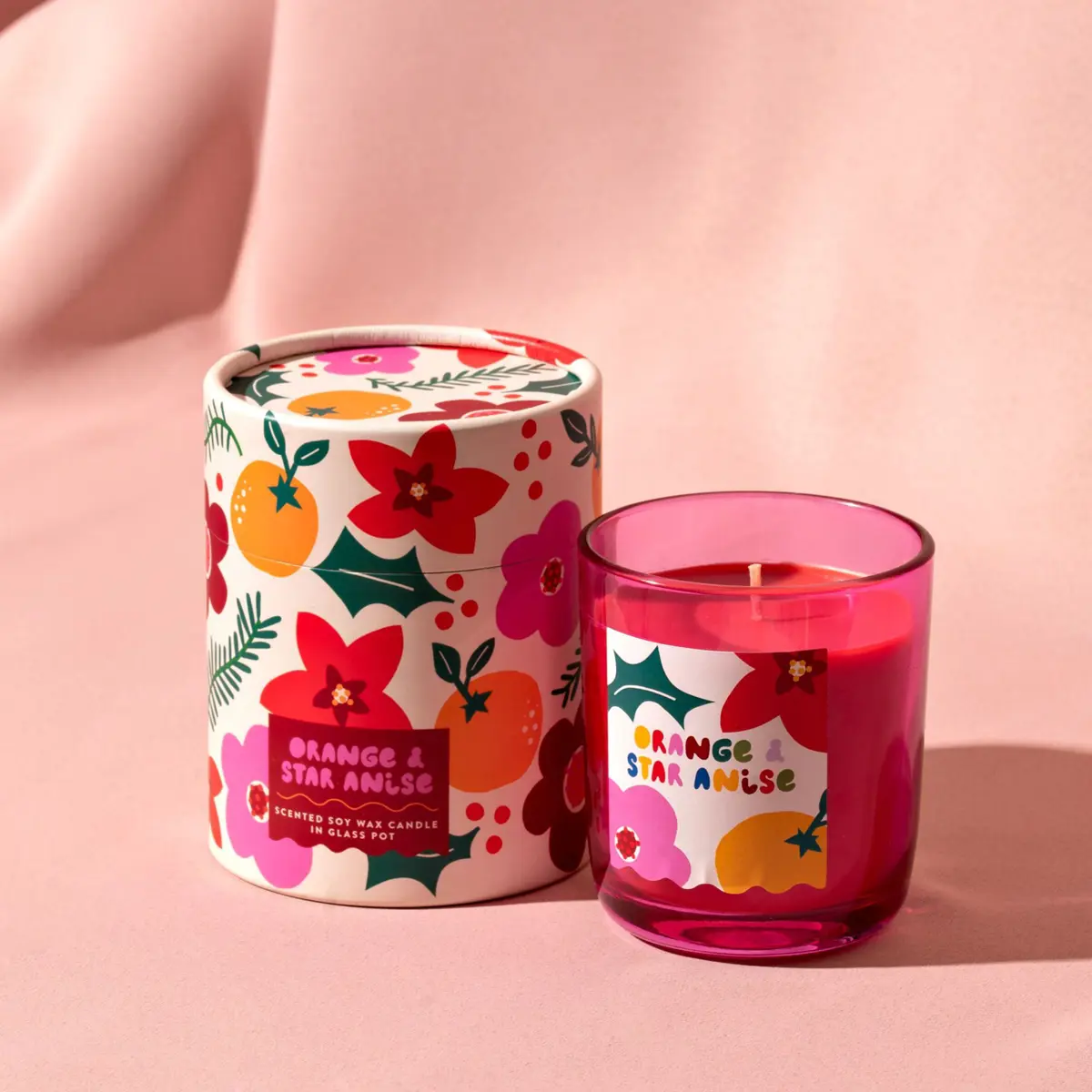Poured in a charming glass pot, this pink soy wax candle offers approximately 32 hours of burn time. With a lower melting point than paraffin, soy wax ensures a slower, cleaner burn with less smoke and soot—ideal for creating a calm and cosy atmosphere during the festive season.