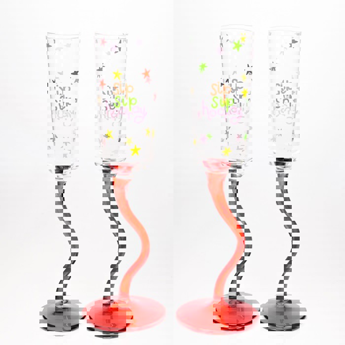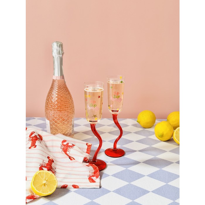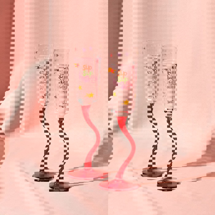 Raise a smile with every sip thanks to this delightful pair of wavy stemmed glasses, lovingly designed by Raspberry Blossom®. Perfect for prosecco, sparkling wine or any celebratory fizz, these unique glasses are full of character and charm—ideal for toasting life’s joyful moments.