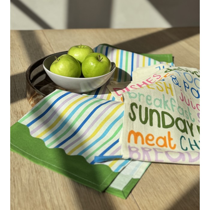 Add a burst of colour to your kitchen with this joyful set of three 100% cotton tea towels, lovingly designed in collaboration with Raspberry Blossom®. With vivid prints and cheerful hues, they’re a simple way to brighten your daily routine.