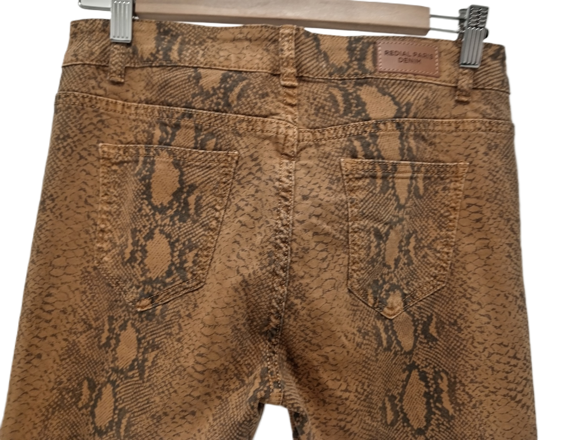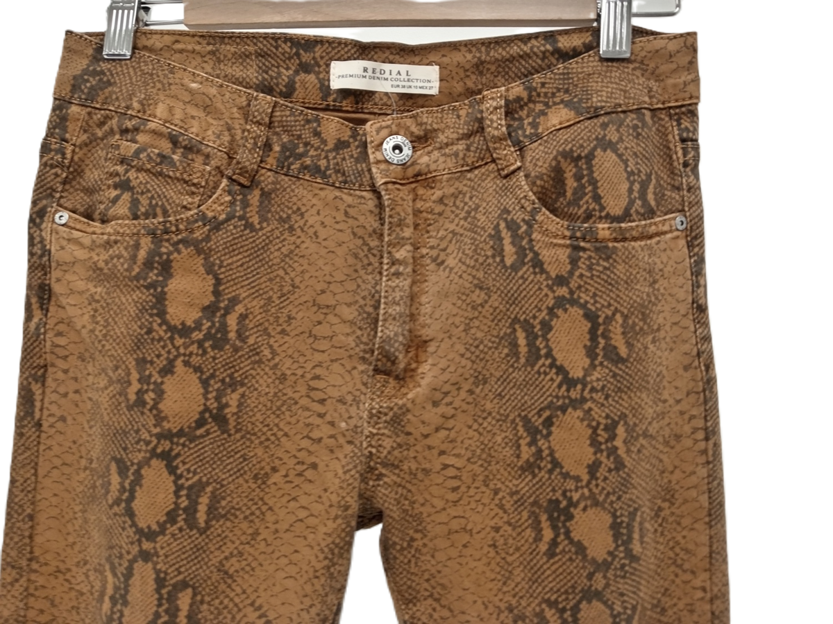 REDIAL Ladies UK Size 10 Brown Snak Print Skinny Fit Jeans Pre-Loved