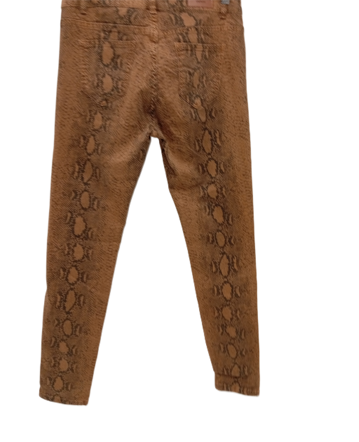 • Snake Print Pattern: A striking brown snake print adds texture and visual interest to these classic skinny jeans, making them stand out in any outfit.