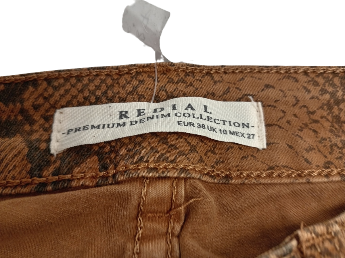 REDIAL Ladies UK Size 10 Brown Snake Print Skinny Fit Jeans