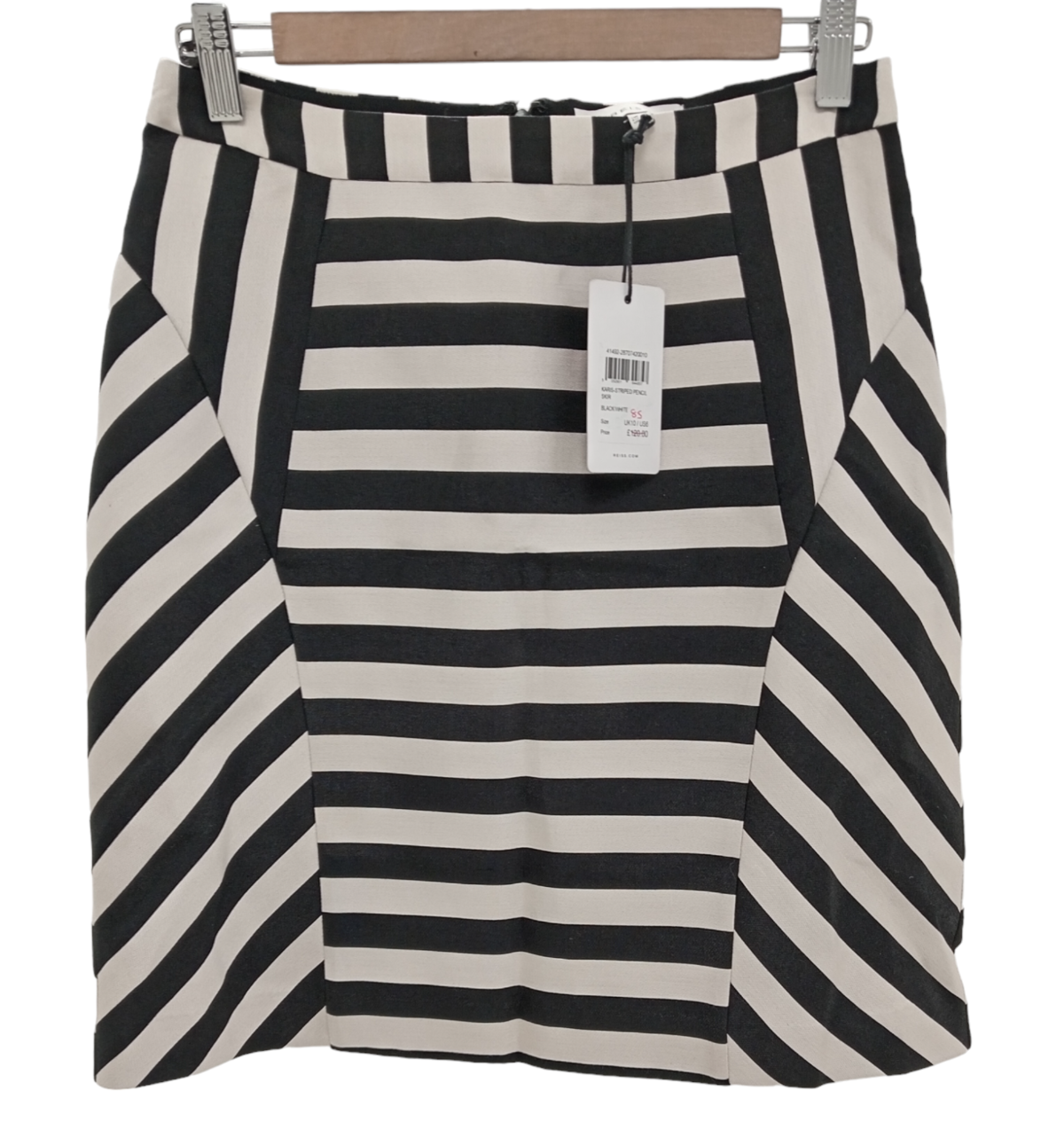 REISS Ladies UK 10 Black White Karis Striped Pencil Skirt