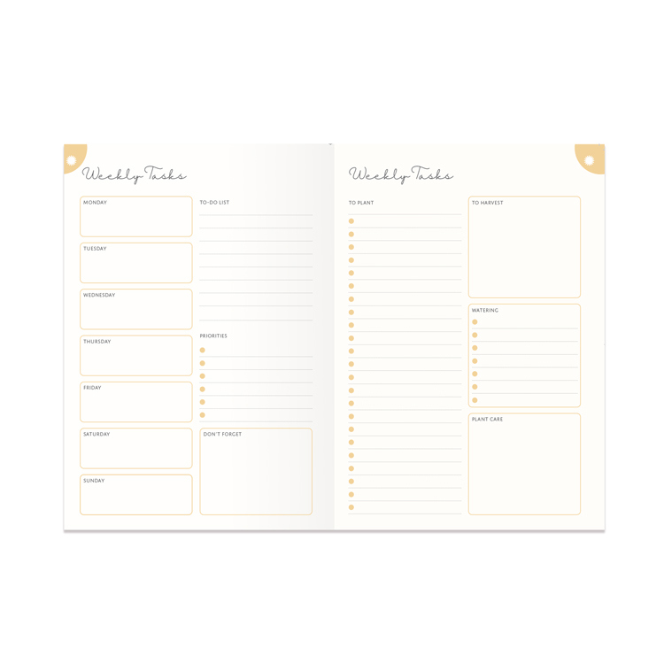 A beautifully crafted 12-month undated planner designed to help you nurture your garden and enjoy every moment of the growing season. With dedicated pages for planning your garden layout, tracking seasonal tasks, scheduling weekly tasks, and recording your favourite plants and seeds, this journal is a joyful companion for green-fingered enthusiasts. Complete with an annual review section, it offers a space to reflect and celebrate your garden's journey through the year. Makes a great gift for garden lovers.