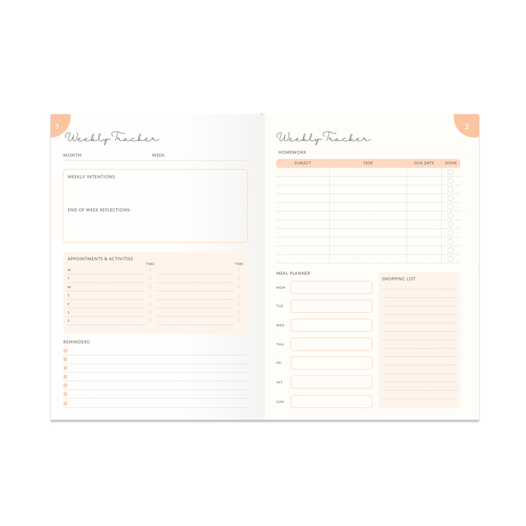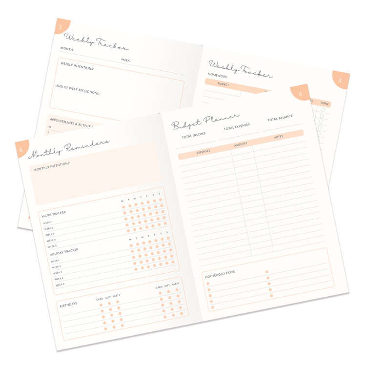 This beautifully crafted 12-month undated planner is designed to help you capture life’s important moments and stay organised all year round. With 180 thoughtfully designed pages, it features guided sections including Monthly Reminders, a Budget Planner, Weekly Trackers, a Summer Holiday Planner, and a Christmas Planner—making it ideal for busy households.
