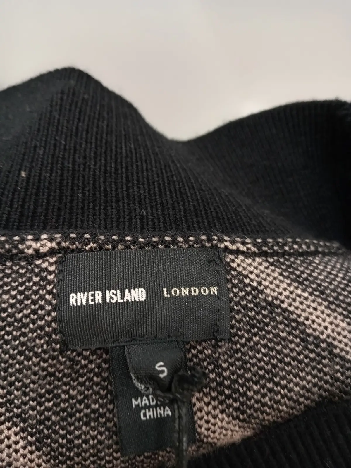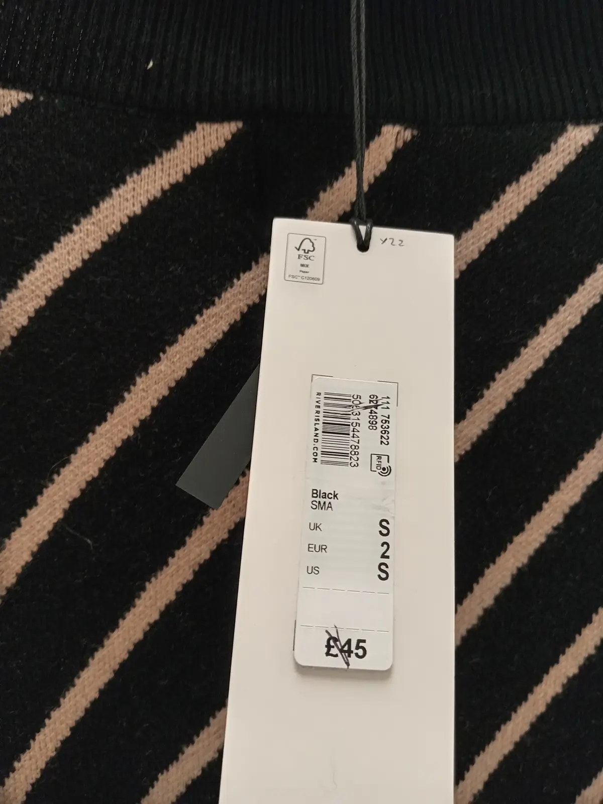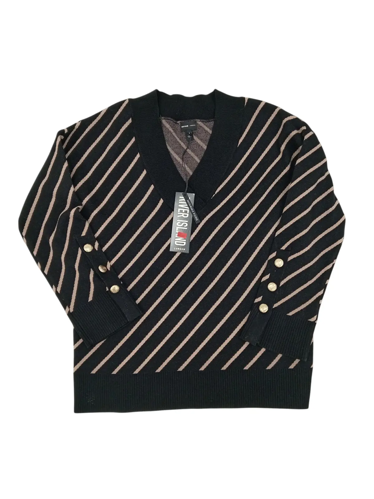 Add a chic and timeless touch to your wardrobe with this RIVER ISLAND Ladies UK Size Small Black & Beige Stripe V-Neck Jumper, perfect for layering in every season.