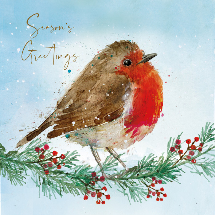 Robin on a Branch Pack of 10 Charity Christmas Cards