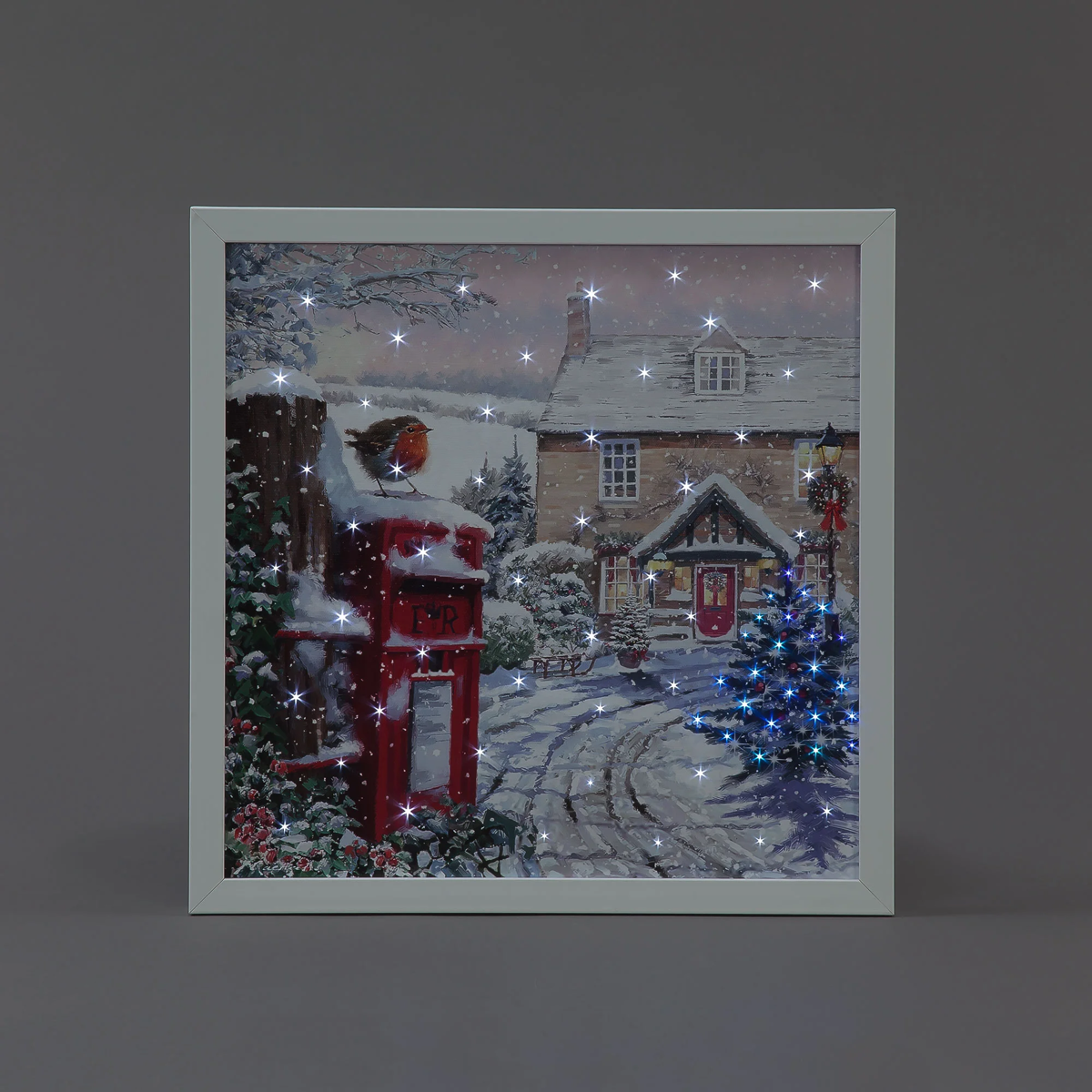 Robin On Postbox Battery Operated 40 x 40cm LED Canvas Christmas Wall Decoration