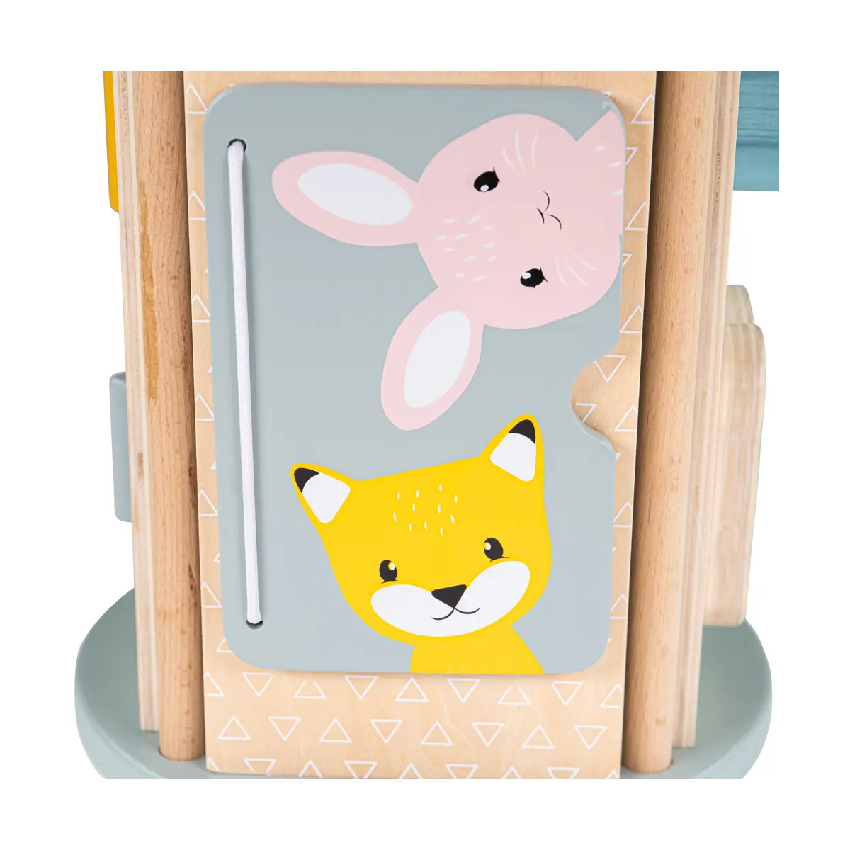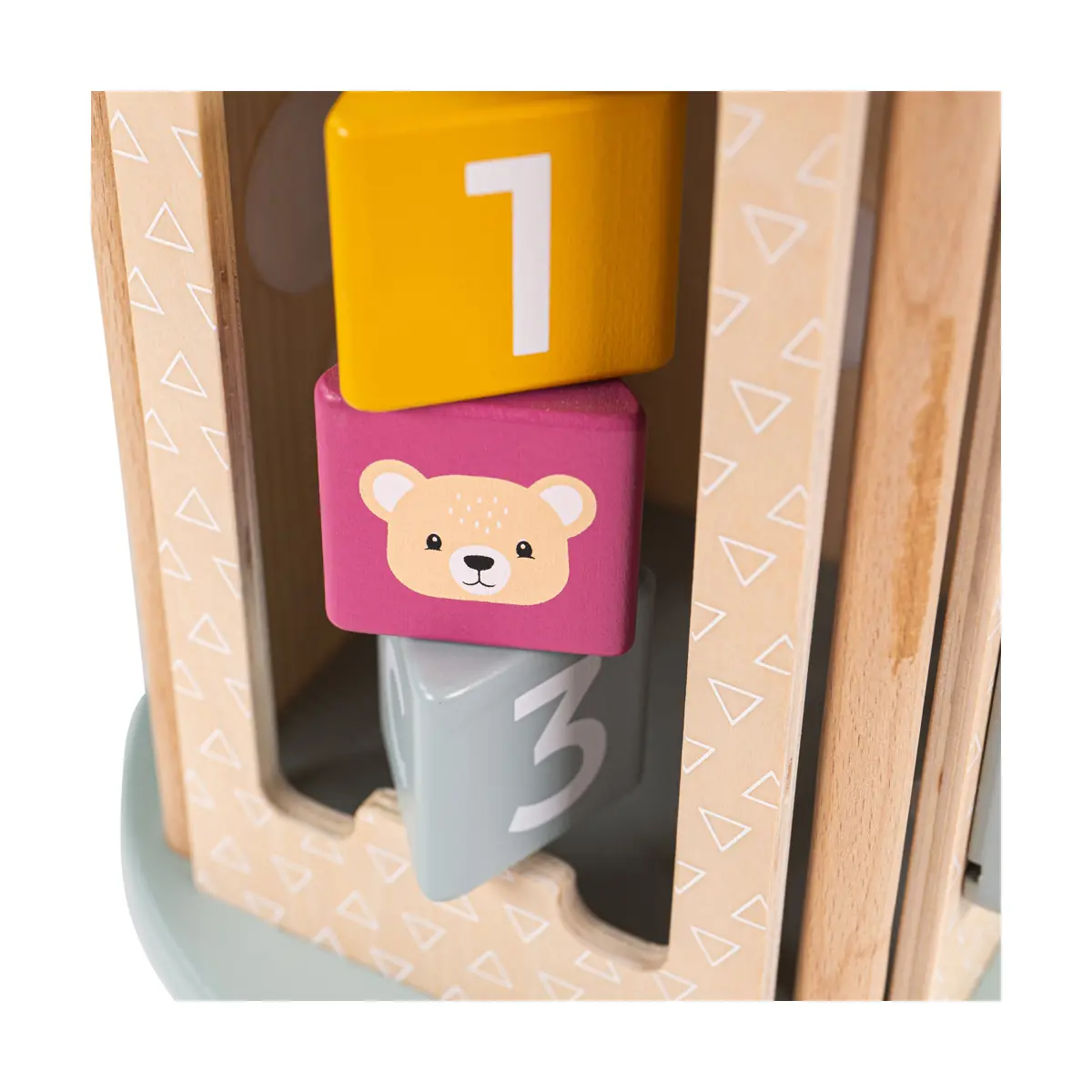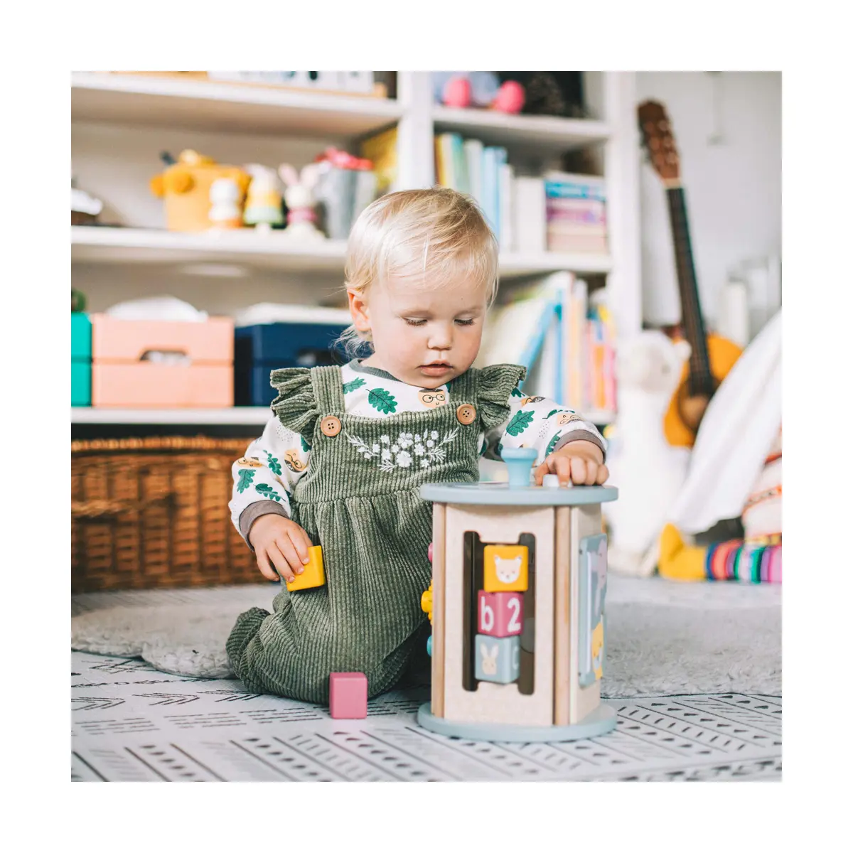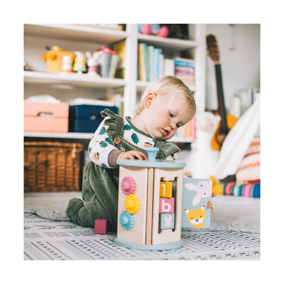 Little ones will be captivated by our 100% Rolling Activity Sorter. There are four sides packed with activities including a wooden shape sorter, wooden flip book, wooden cogs and more. Its rolling nature makes it a fun task for toddlers to push along the ground as they toddle along. Little fingers can touch, pull, twist, turn, and flip all the different wooden elements on the four sides of the activity roller. This helps them to develop their dexterity and fine motor skills as they explore each side. At the top is a shape sorter where busy hands need to slot the wooden shapes through the correct slot. The activity sorter also opens up for easy access to the wooden shapes, too. Made from responsibly sourced materials, this shape sorter has been made in the most ethical way possible. The quality of the wood also means it has many years of play in it. Conform to current European safety standards. 100% Rolling Shape Sorter product features: Ideal for developing dexterity and hand/eye coordination.