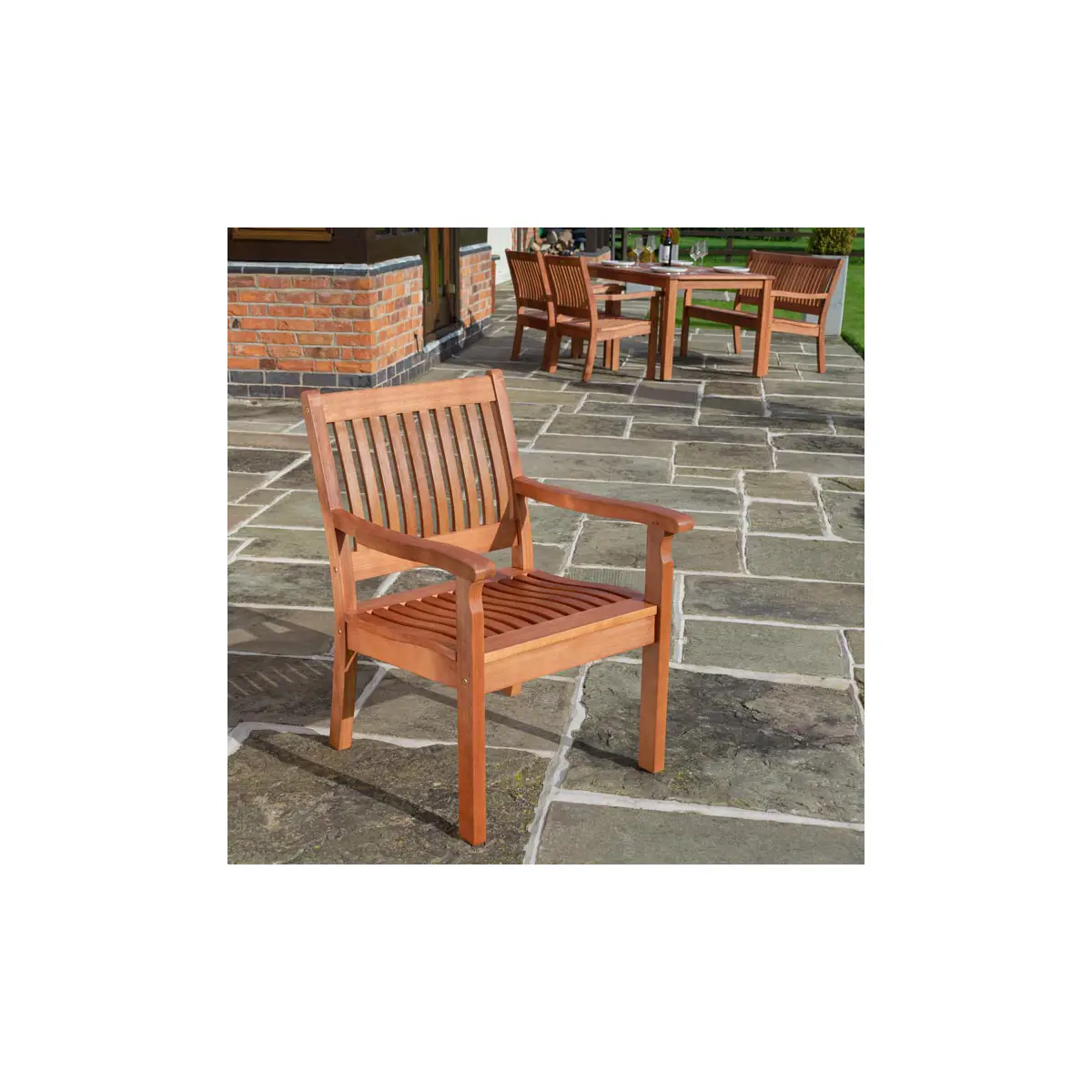 Experience the durability and sturdiness of premium hardwood construction. The Willington Garden Armchair is built to withstand the elements, ensuring lasting quality and enjoyment for years to come.