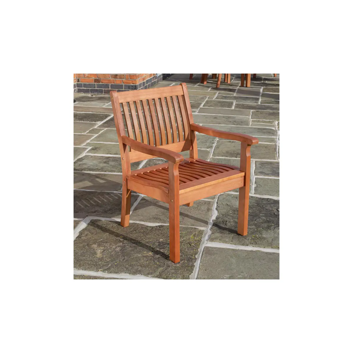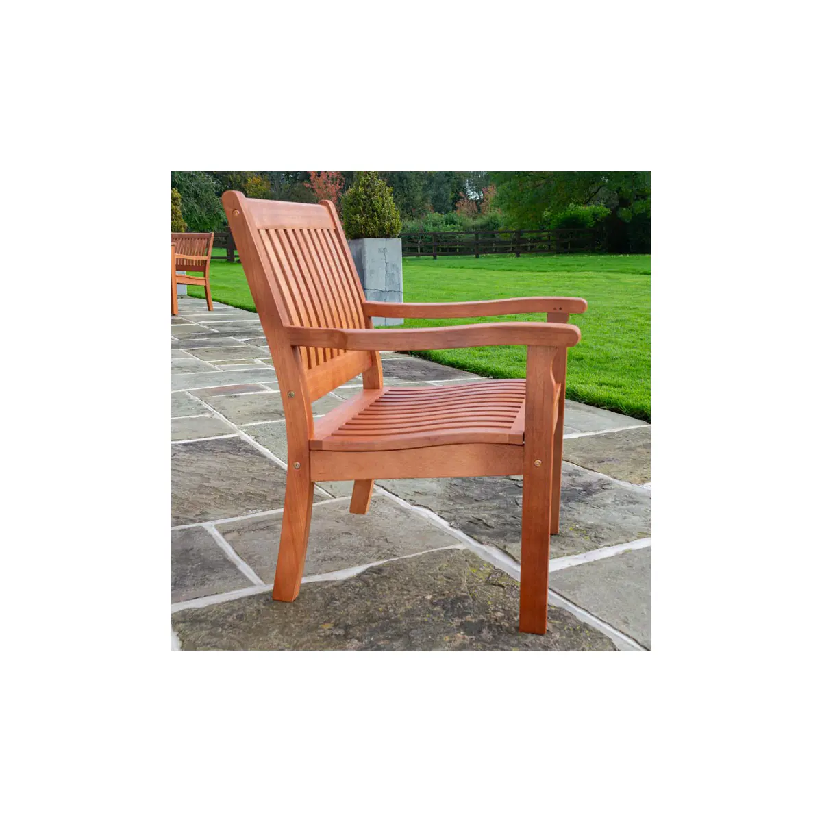 The factory stain finish highlights the natural beauty of the hardwood, adding a touch of sophistication to your garden. This protective finish not only enhances the chair’s aesthetic appeal but also ensures it stands up beautifully to outdoor conditions.