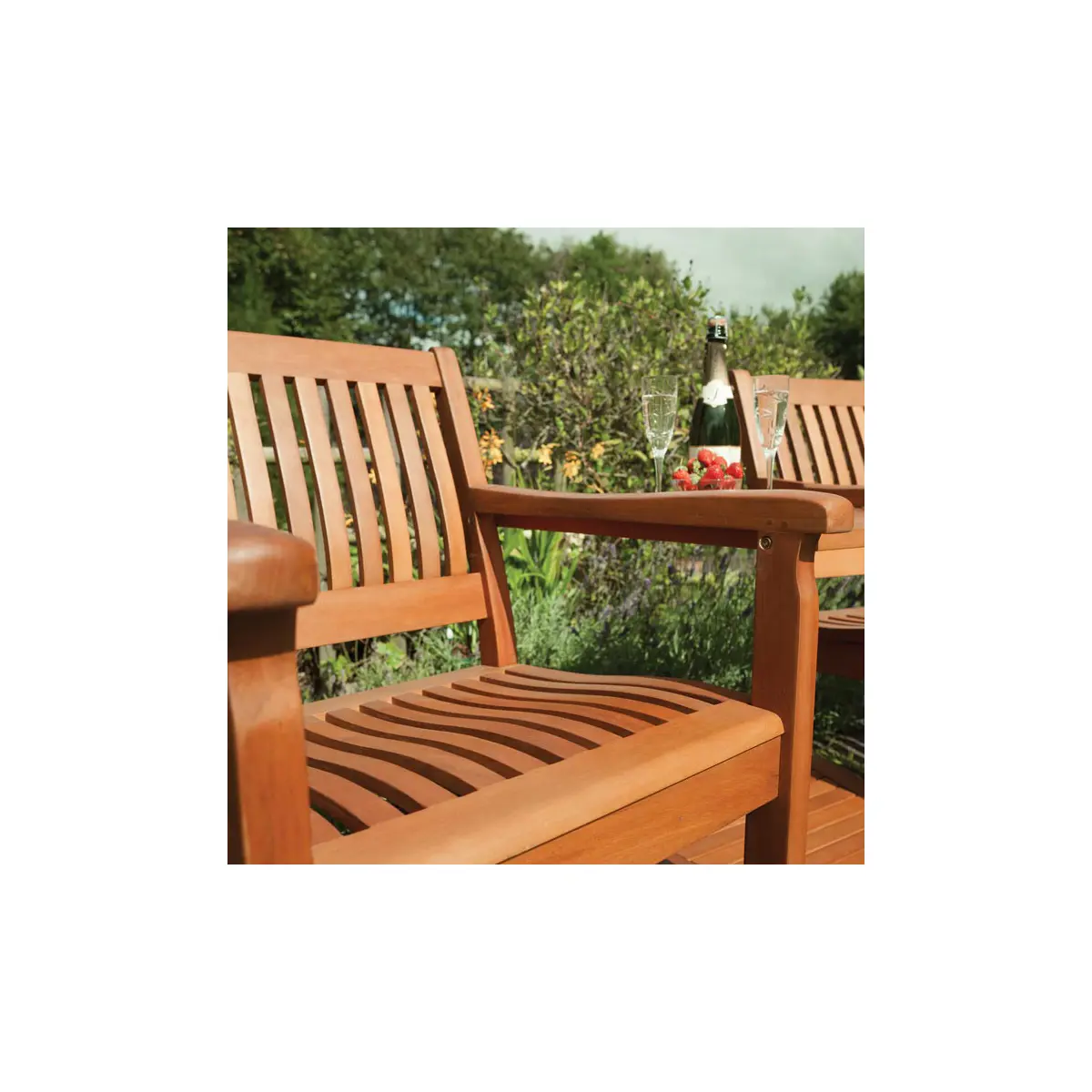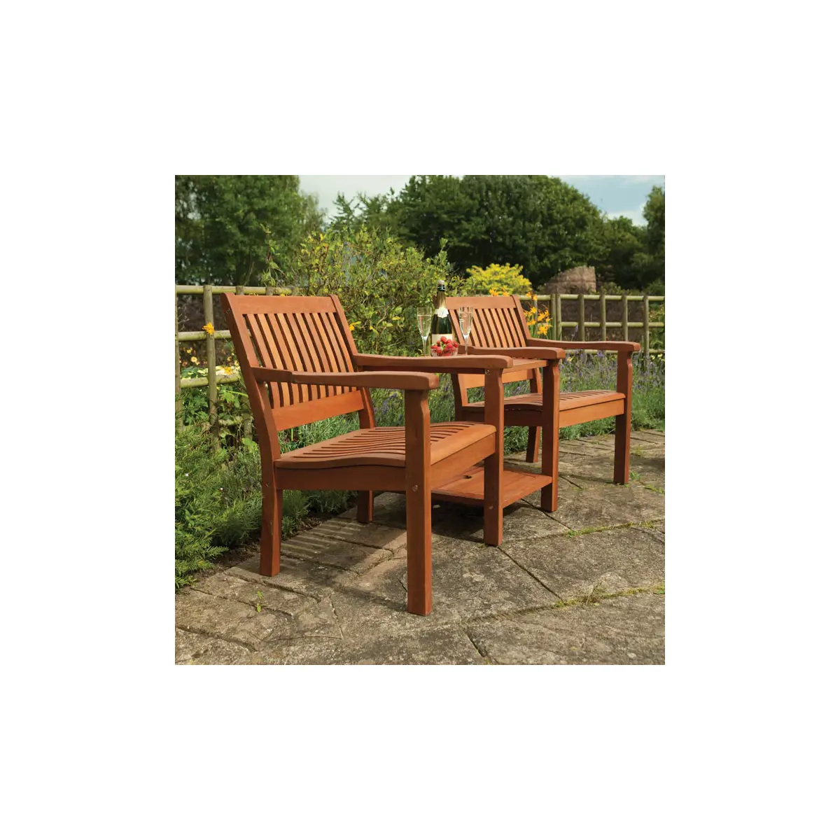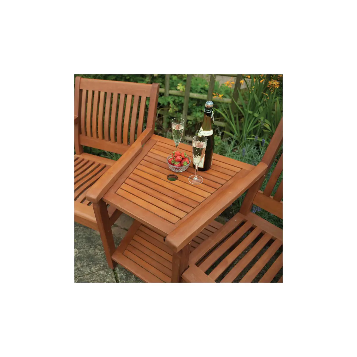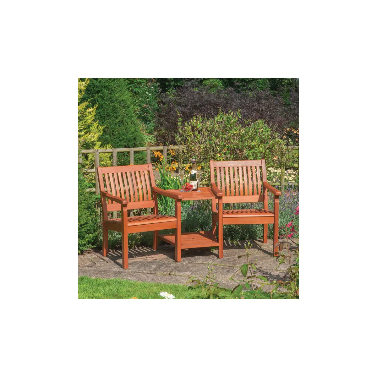 Featuring both upper and lower centre tables, the Willington Garden Companion Seat offers convenient surfaces for your drinks, snacks, books, or gardening tools. The thoughtfully designed layout makes it easy to keep everything you need within arm’s reach.
