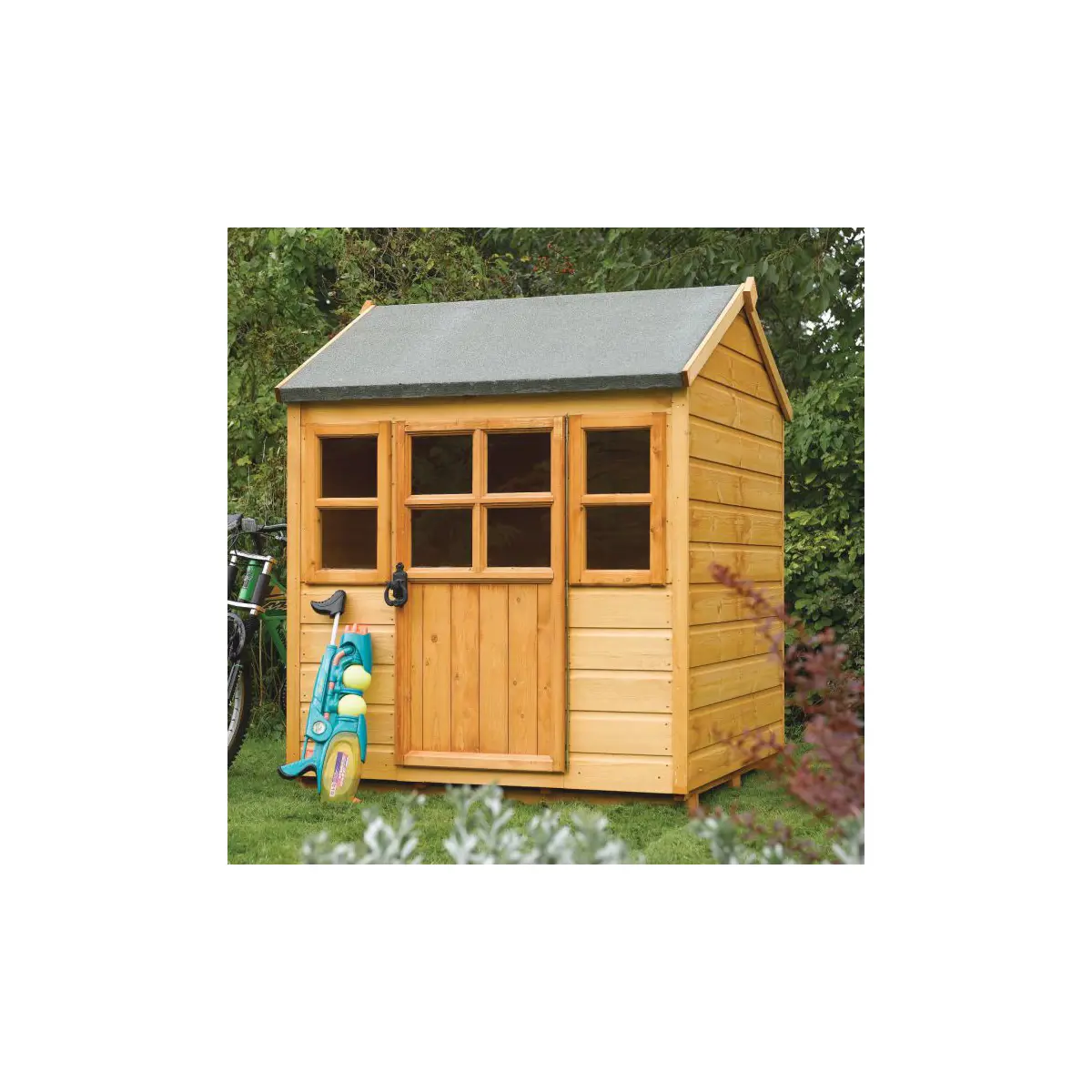 Say goodbye to rainy days spent indoors and hello to the little lodge – the perfect hideout for play in all conditions. Built in the style of a classic country summerhouse, this handy den makes space for imaginary fun and more. Fill it with toys, games, bikes and more and let your little ones run wild, protected from the elements by a solid board floor and mineral felt roofing. Ideal for keeping boredom at bay, this sturdy lodge is a must-have for any child-friendly garden set-up. Made in the UK from responsibly sourced wood. Suitable for children 3+. 1 year Manufacturers Warranty and 10 Year Rot Guarantee.