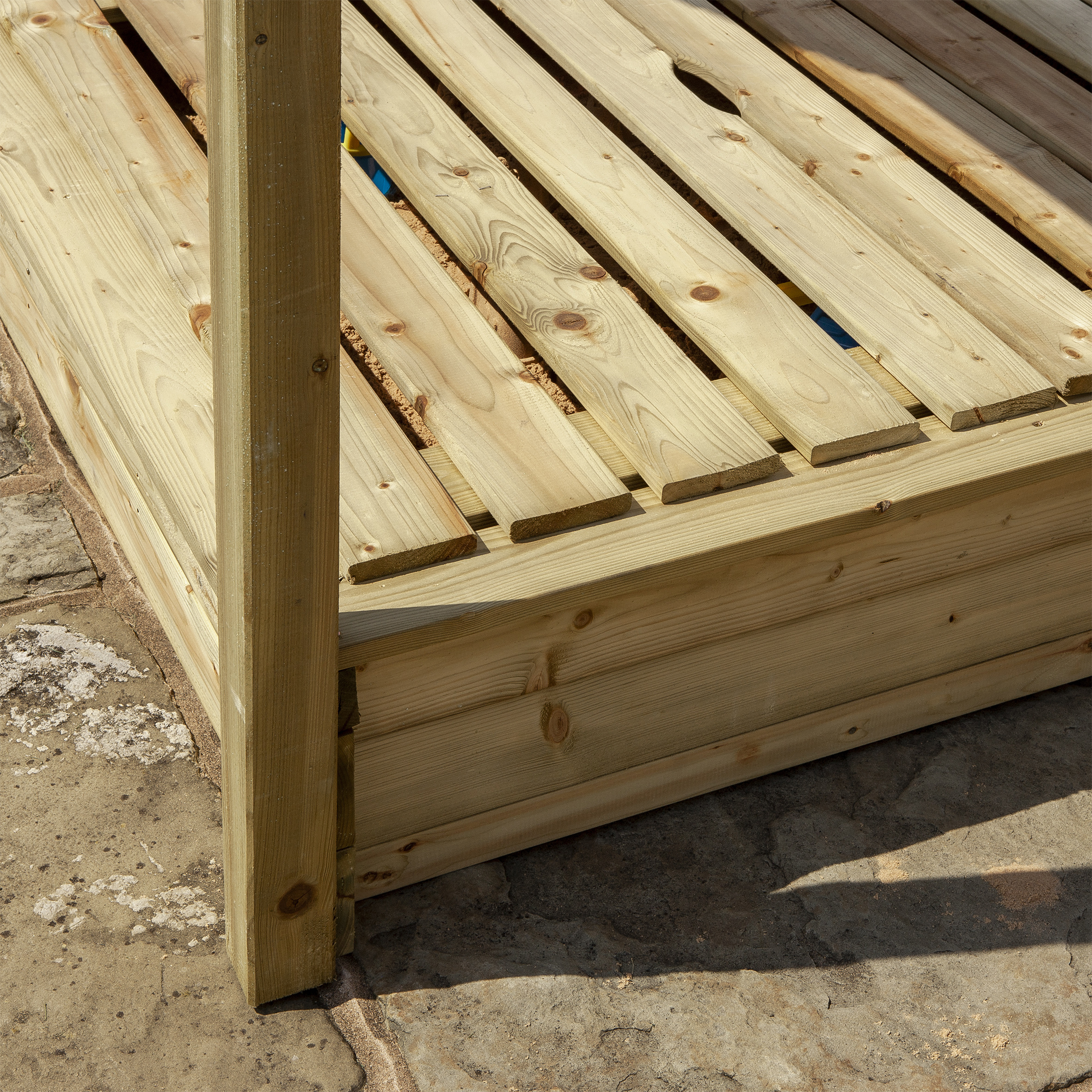 Get ready for spring and summer fun with the parkland sandpit, designed to bring seaside fun to your very own backyard. Built from natural timber and treated to prevent decay, this durable shaded sandpit keeps your little ones safe, no matter what time of day. Even as the sun reaches its peak or during an afternoon shower, play can continue uninterrupted for hours on end. Paint yours to match your outdoor theme or enjoy the organic finish – we’re pretty sure your little pirate won’t mind either way! Made in the UK from responsibly sourced  wood. Suitable for children 3+. 1 year Manufacturers Warranty and 10 Year Rot Guarantee.