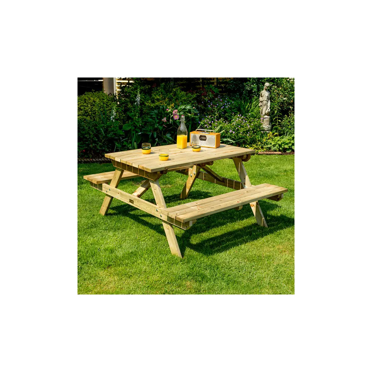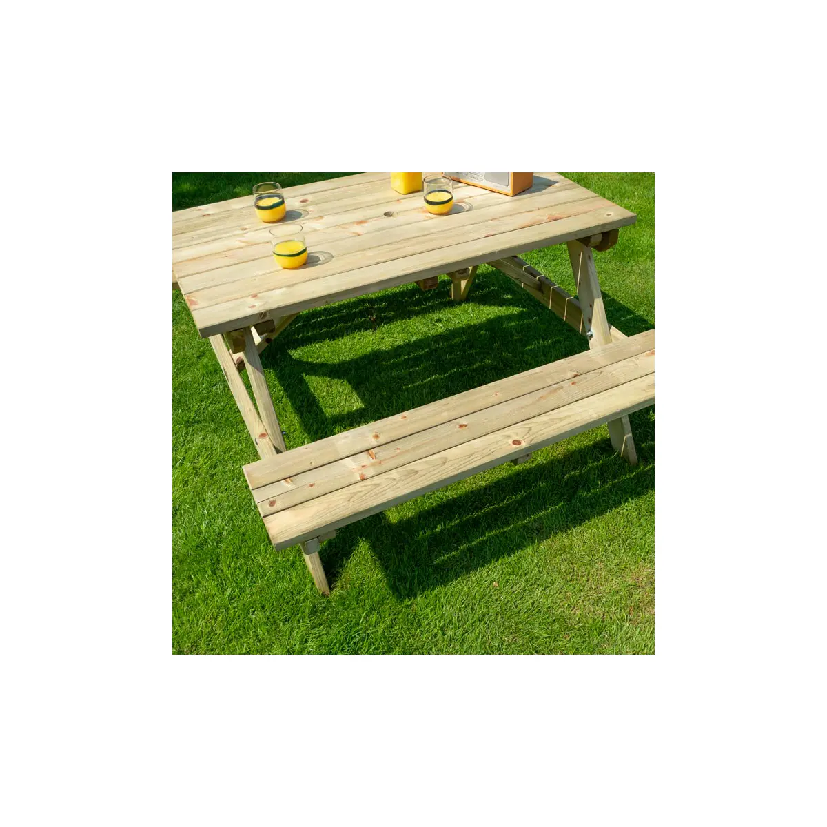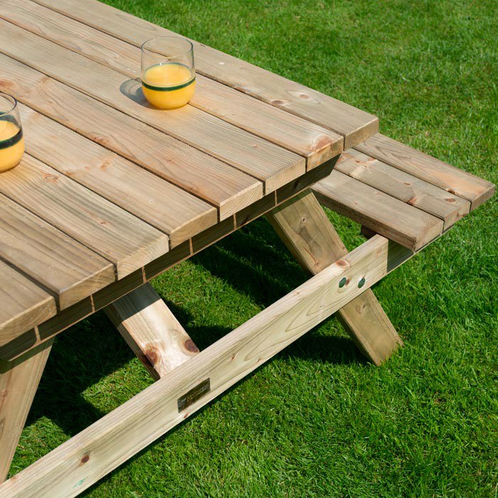 The Rowlinson 4ft Picnic Bench comfortably seats up to four people and is perfect for enjoying the summer. Pressure treated against rot and with a natural timber finish, it is ideal for all gardens. Table top and seats pre-assembled for easy assembly.