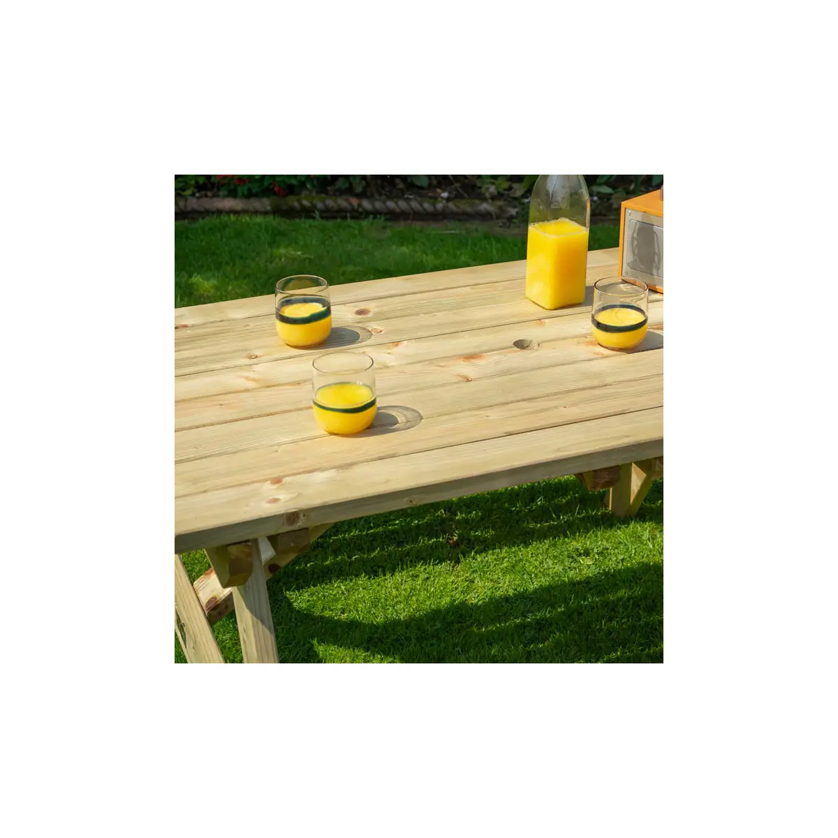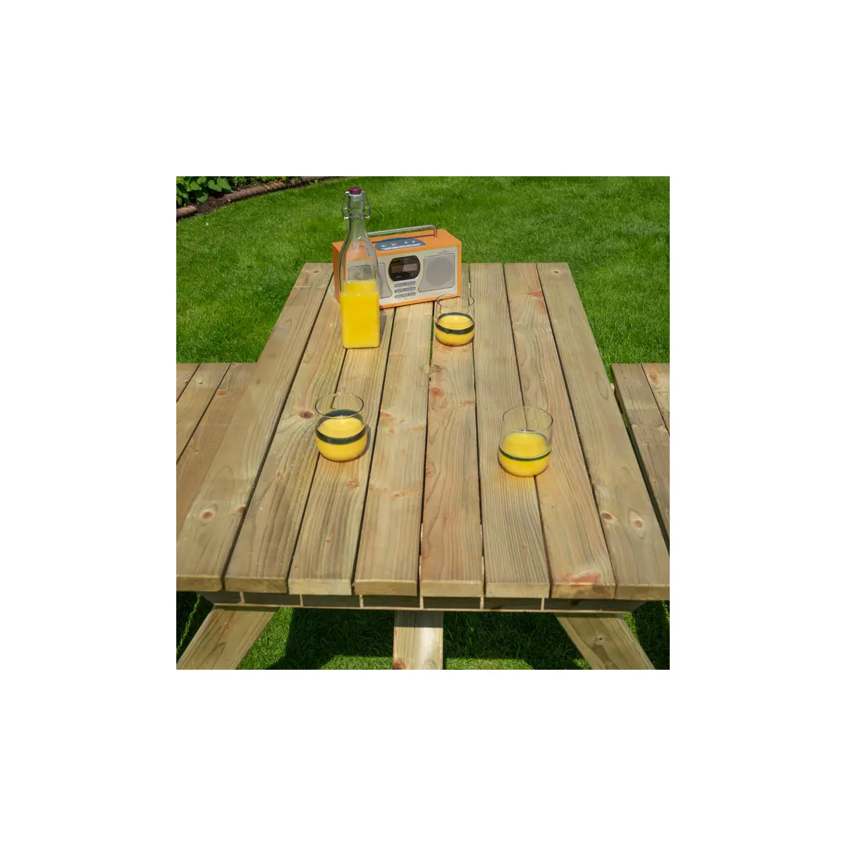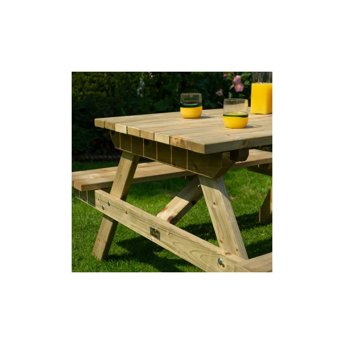 The Rowlinson 4ft Picnic Bench comfortably seats up to four people and is perfect for enjoying the summer. Pressure treated against rot and with a natural timber finish, it is ideal for all gardens. Table top and seats pre-assembled for easy assembly.