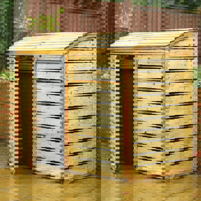 This double bin store is a practical and visually appealing addition to any garden, offering an easy way to keep your bins neatly hidden and protected.