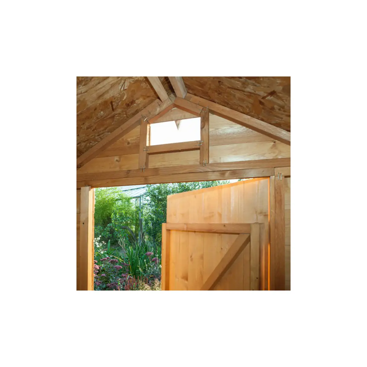 This shed is equipped with features to enhance security and functionality:
