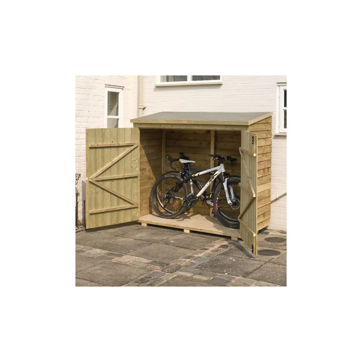 • Double doors: Provides easy access for larger items such as bikes or garden equipment.