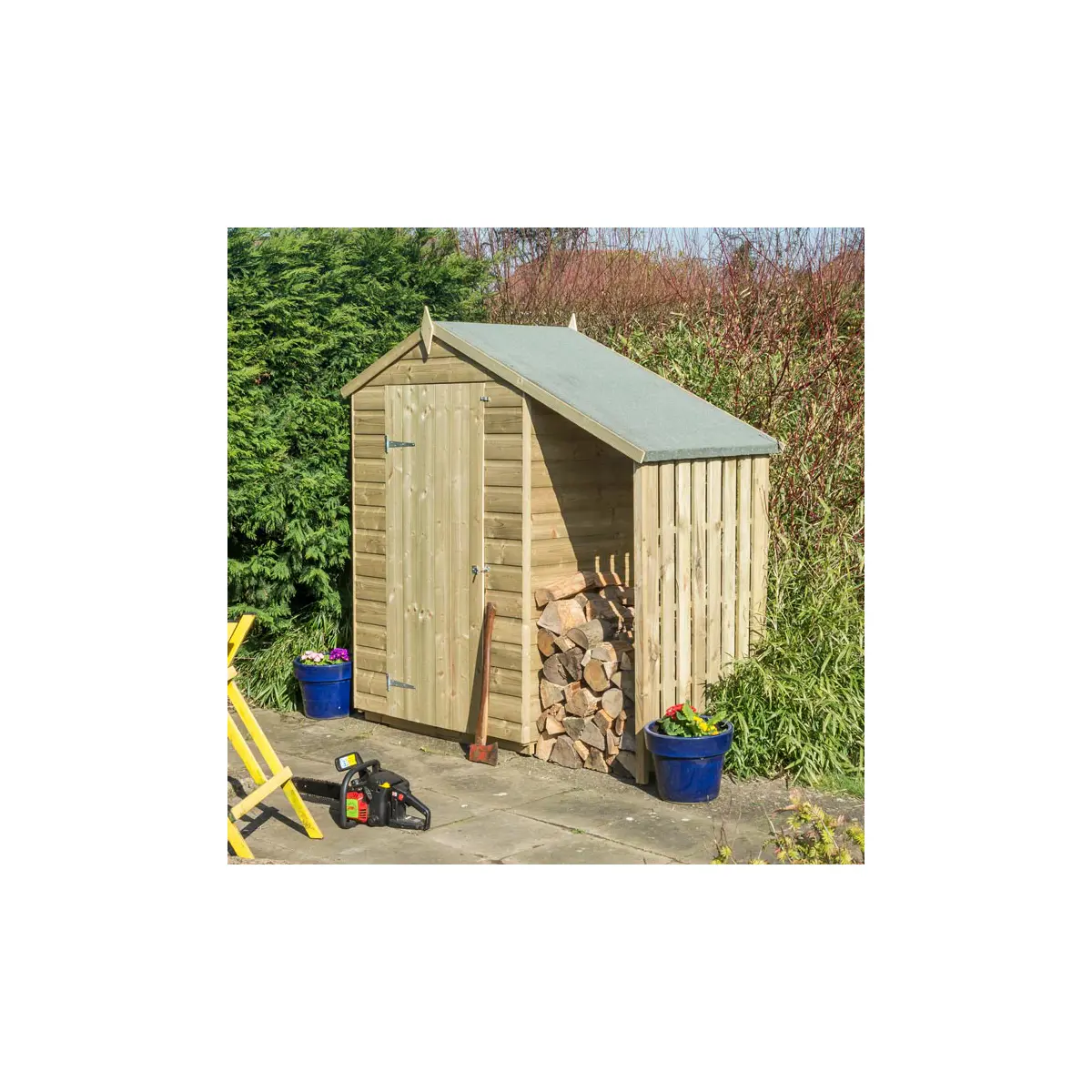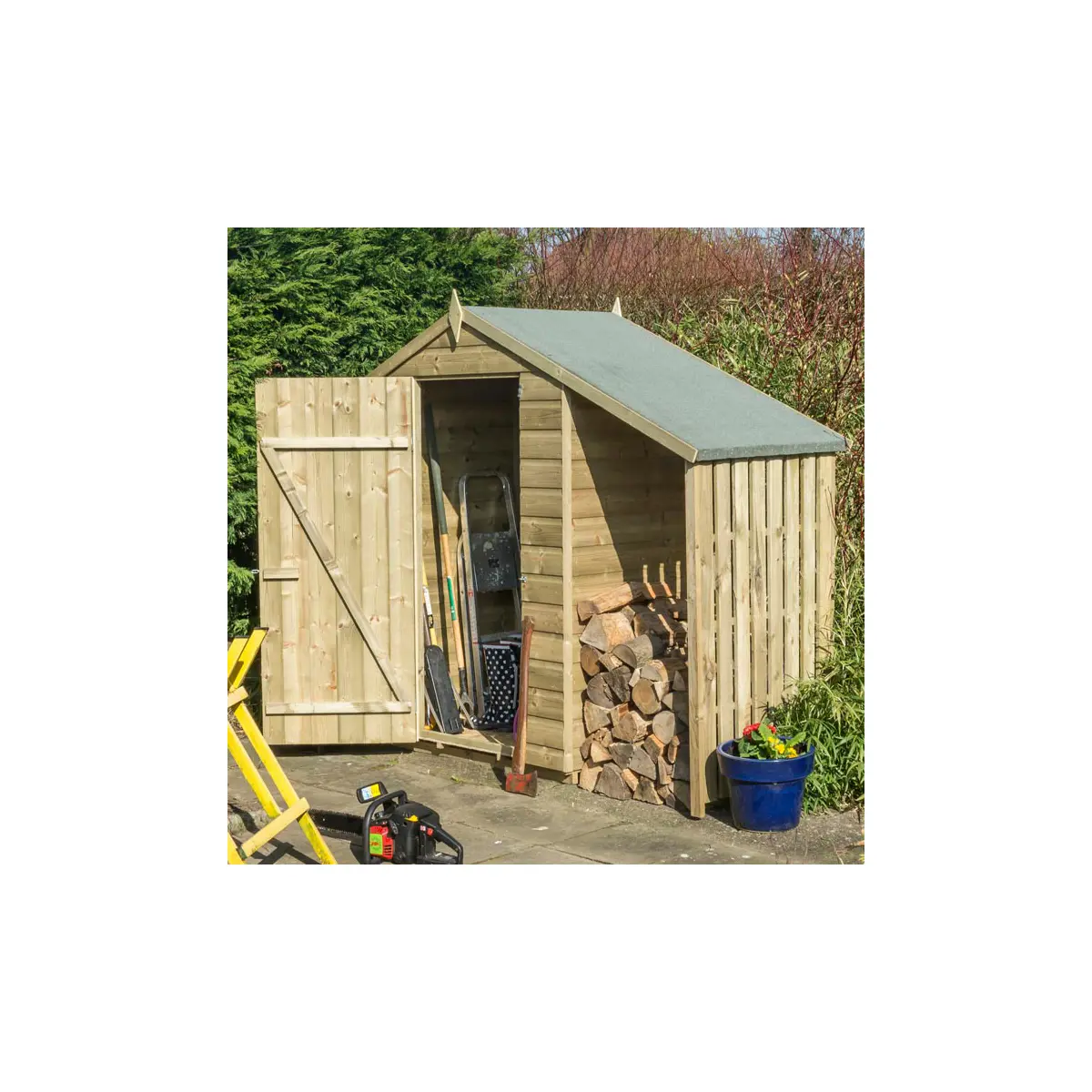 Upgrade your outdoor storage solution with our 4×3 Shed with Lean To/Log store – a blend of practicality, durability, and timeless design.