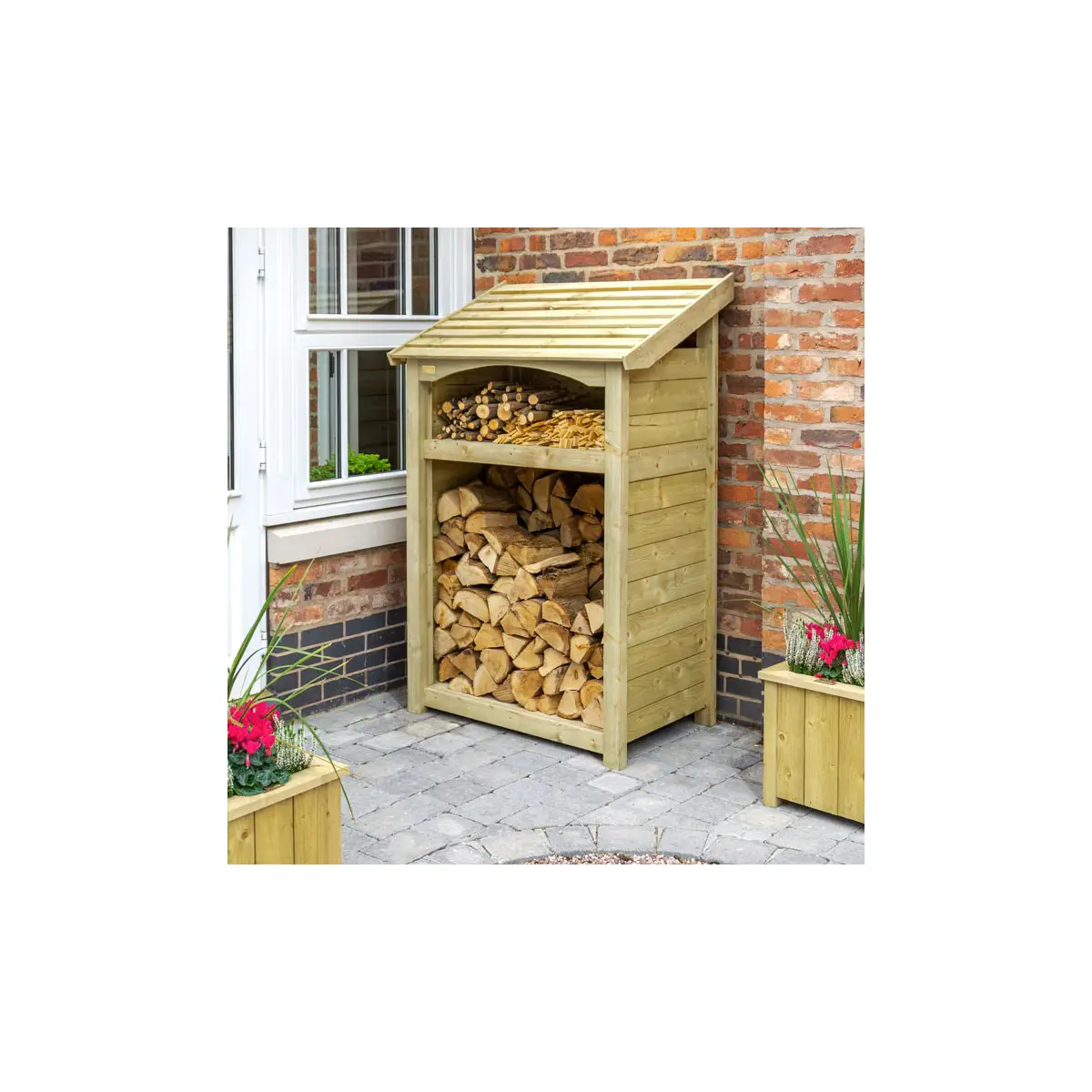 The elegantly designed Rowlinson Premium Heritage Single Log Store with its arch fascia and fine sawn detailing, will not only make an impressive feature of your log storage, it will also keep logs in perfect condition ready to use when you need them. The large storage capacity can easily hold a double row of logs up to 270mm long. While the handy shelf, that can be positioned at any height within the store is ideal for sticks and kindling. The heavy duty timber construction is pressure treated for long life protection against the elements.