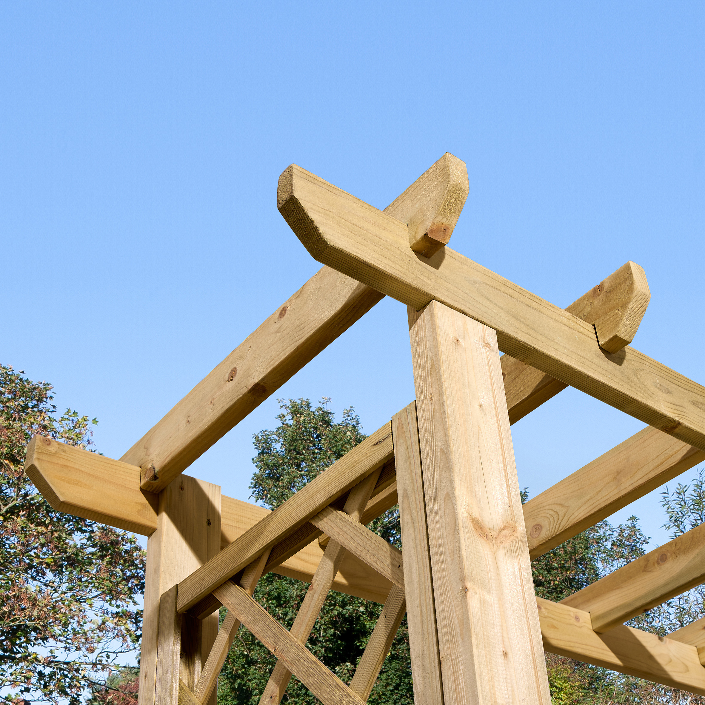 The flat pergola-style roof and diamond lattice panels add an airy, decorative touch, while pressure-treated timber ensures long-lasting durability. Add your favourite outdoor lighting to the frame and enjoy evenings outdoors well into the night.