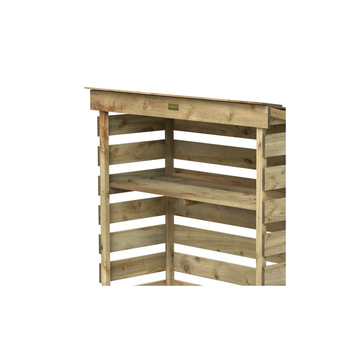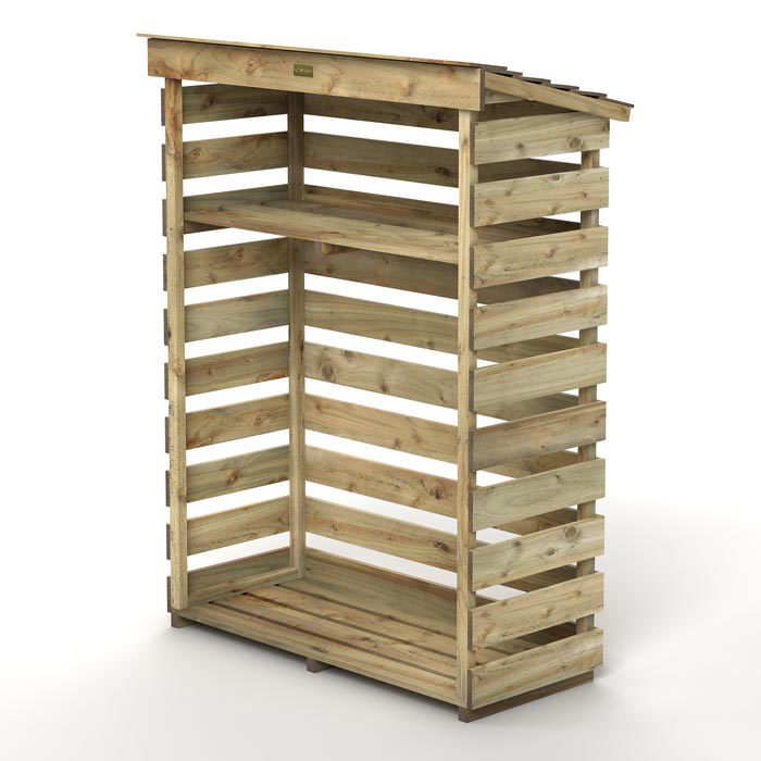 • Rough sawn, natural timber finish: The rustic, rough sawn finish gives the log store a natural appearance that complements garden or outdoor spaces.