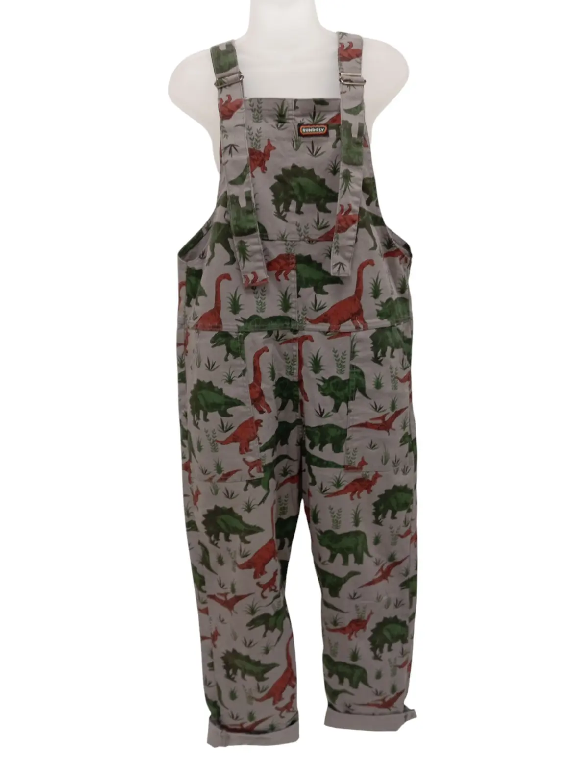 Unleash your playful side with this quirky Run & Fly grey all-in-one jumpsuit featuring a fun dinosaur print! Made from soft and breathable cotton, these dungarees are perfect for adding a unique touch to your casual wardrobe. With a comfortable, relaxed fit and adjustable shoulder straps, this jumpsuit ensures effortless style and comfort.