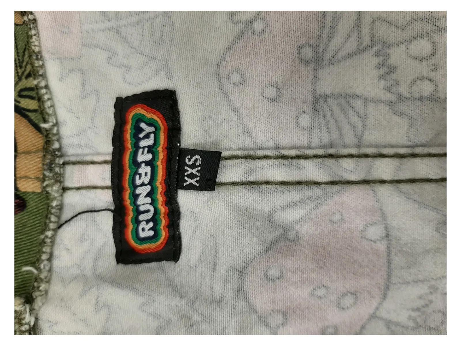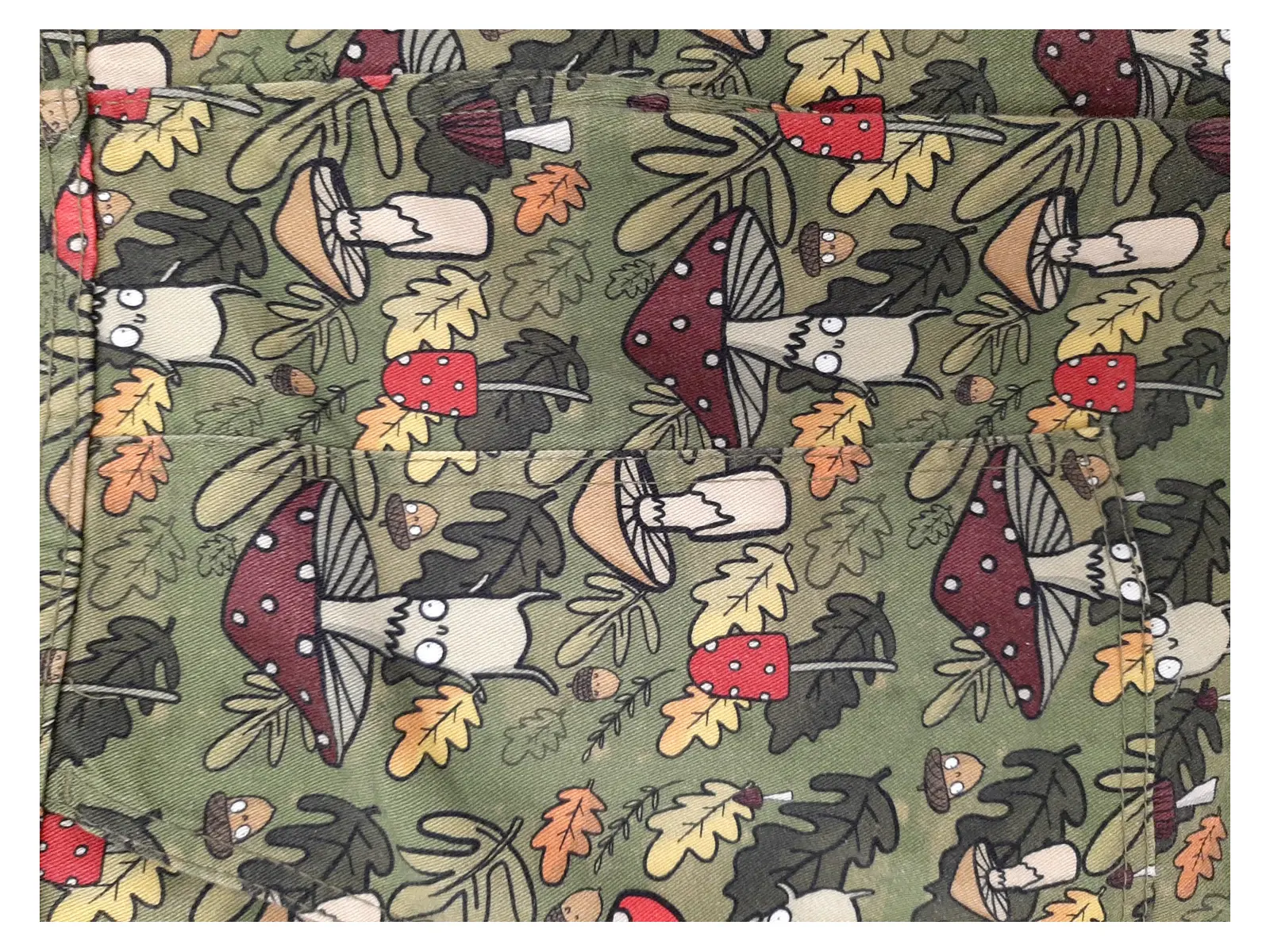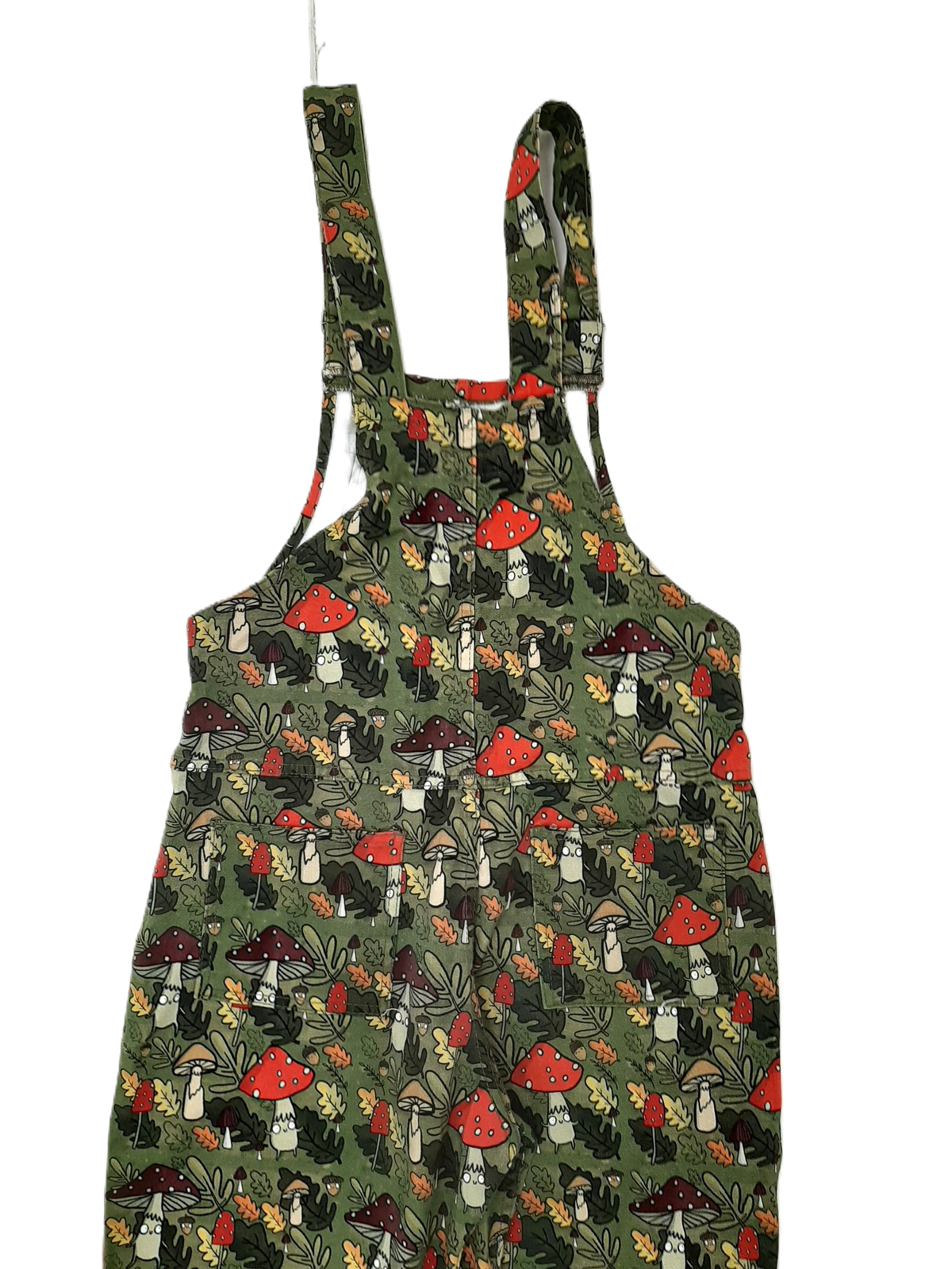 Step into whimsical woodland style with these RUN & FLY Forest Print Dungarees, featuring an adorable cartoon mushroom and forest-themed illustration on a vibrant green base. Made from 100% cotton, they're lightweight, breathable, and full of character – perfect for lovers of quirky, playful fashion.
