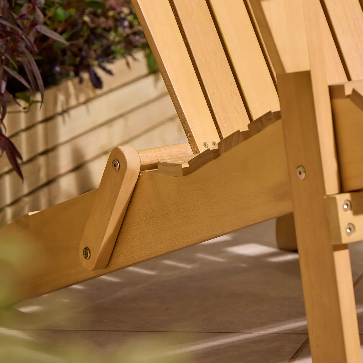 Relax and unwind in style and comfort with the Rowlinson Sandown Adirondack Folding Chair. This classic design features a contoured seat and wide, flat armrests for exceptional comfort while enjoying the outdoors. Crafted from durable eucalyptus hardwood with a factory-applied stain, the chair is built to last. Its folding capability makes it practical and easy to transport or store, combining comfort, style, and convenience for your garden seating needs.