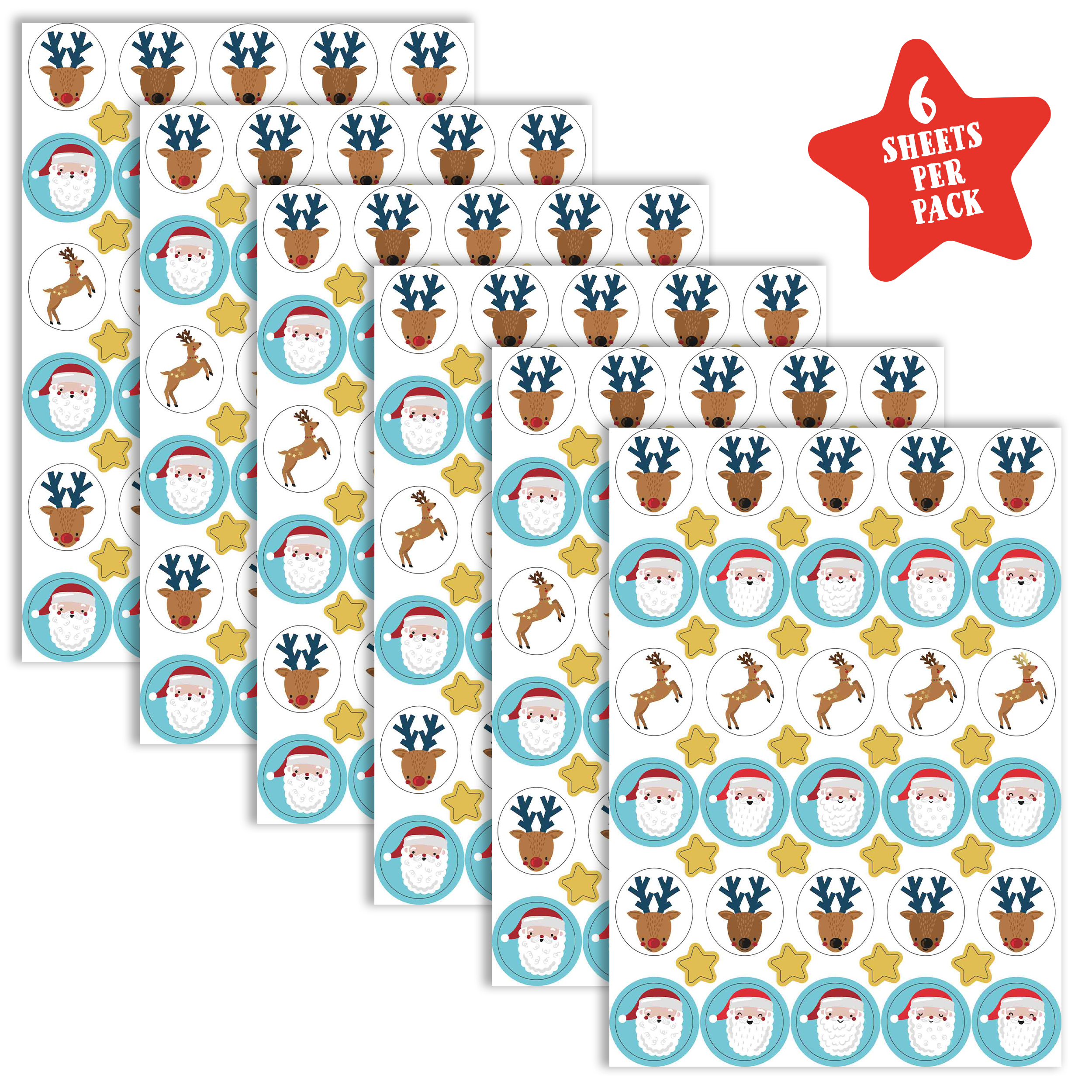 Santa & Reindeer Christmas Gift Wrapping Stickers - 350 Stickers