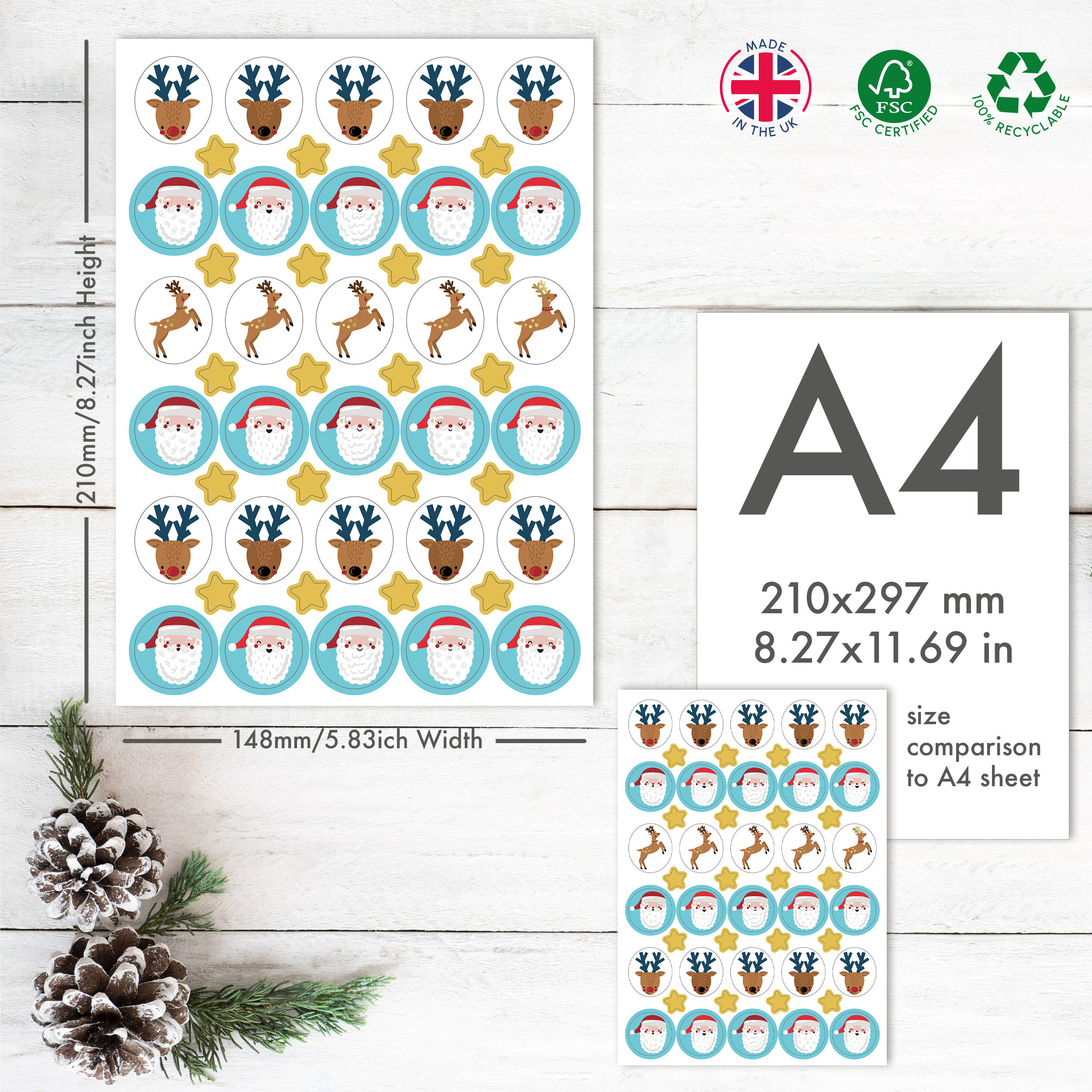 Elevate your gifts with these charming Santa & Reindeer stickers. These delightful accents add a touch of festive magic to gifts, cards, and decorations. Best of all, they are designed and printed in the UK. Spread joy and kindness this season - shop now!