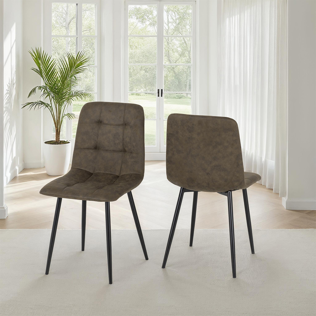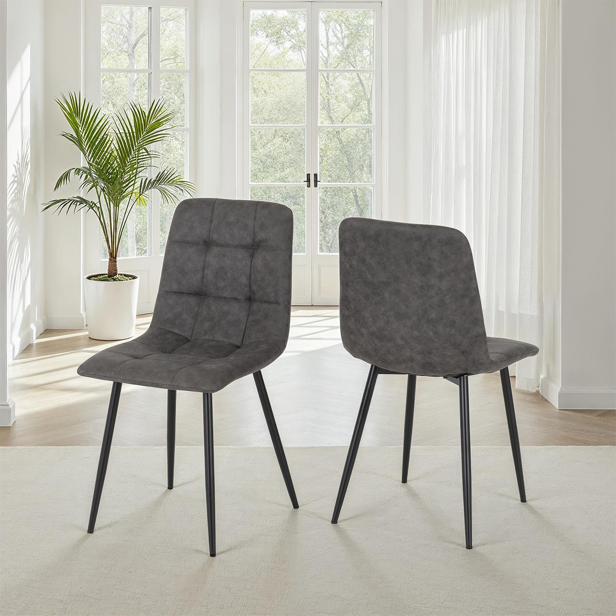 The Fenton Chairs combine modern style with everyday comfort. Featuring a gently contoured seat and padded fabric upholstery, they provide excellent support for relaxed dining. The sleek black metal legs add durability and a streamlined look, making them a versatile choice for contemporary interiors. Sold in sets of two, the Fenton Chairs are available in three colour options: Olive Green (Suede), Light Grey (Fabric), and Dark Grey (Suede)—perfect for complementing a range of décor styles from minimalist to industrial. Ideal for family meals or entertaining guests, these chairs bring a balance of comfort, quality, and modern design to your dining space.