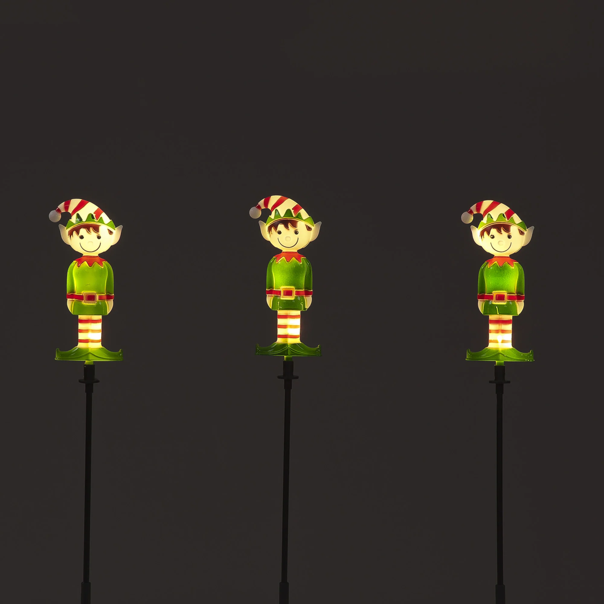 Set of 3 Elf Design 51cm Battery Operated Festive Garden/Outdoor Stakes