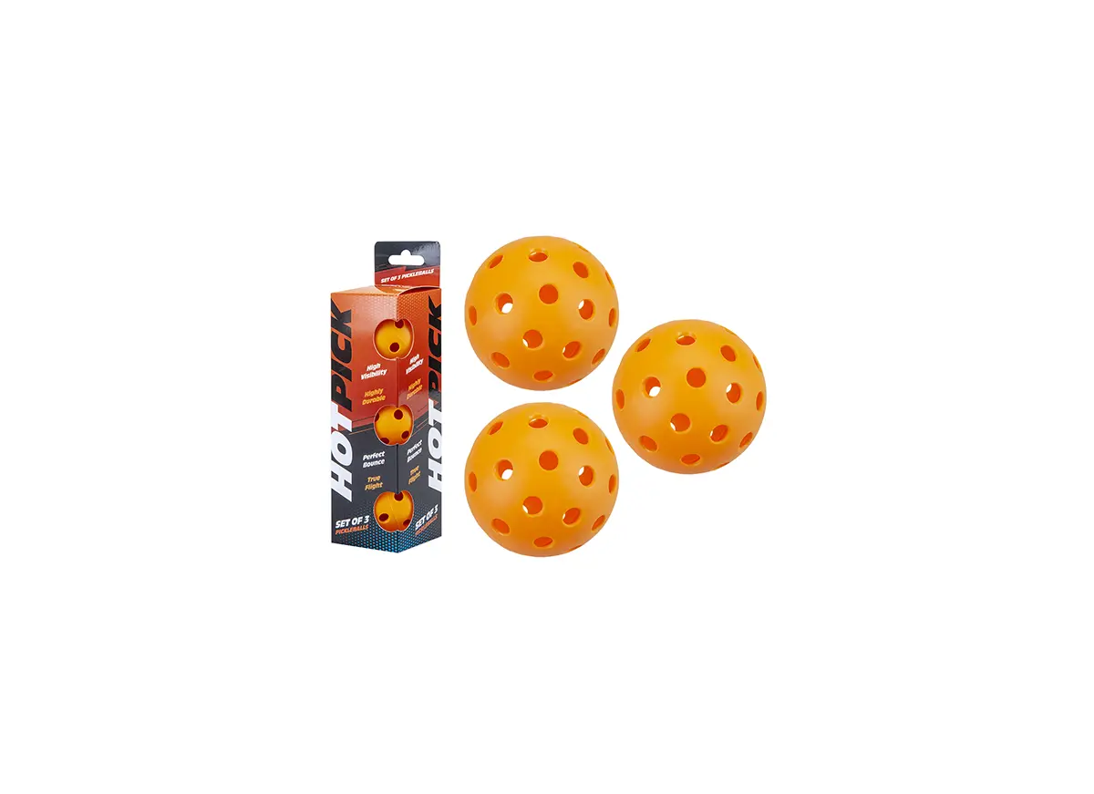 Impress your opponent in your next game of pickleball with this set of 3 Pickleballs from Hotpick. Sporting a vibrant orange colour, the fire trio promises high visibility to keep you on your toes during the game. Extremely durable, they’ll accompany you throughout many matches to come. And they even have the perfect bounce, helping you deliver the best shot no matter what. Upgrade your pickleball gear with Hotpick.