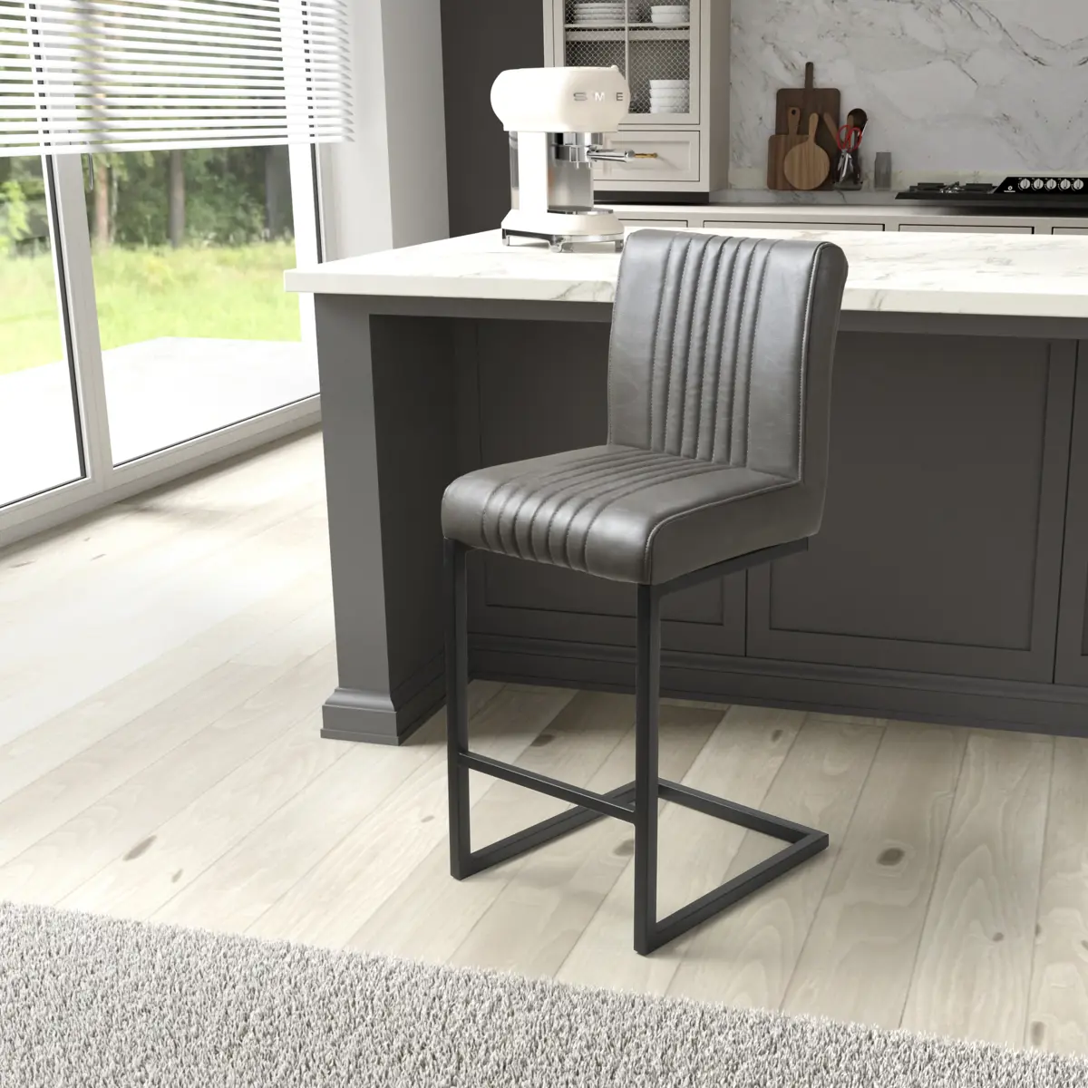 Assembly is required but straightforward, allowing you to enjoy your stylish new bar chairs in no time. Sold in boxes of 2, the Shankar Archer Cantilever Leather Effect Grey Bar Chairs are the perfect choice for adding both style and functionality to your home bar or kitchen counter.