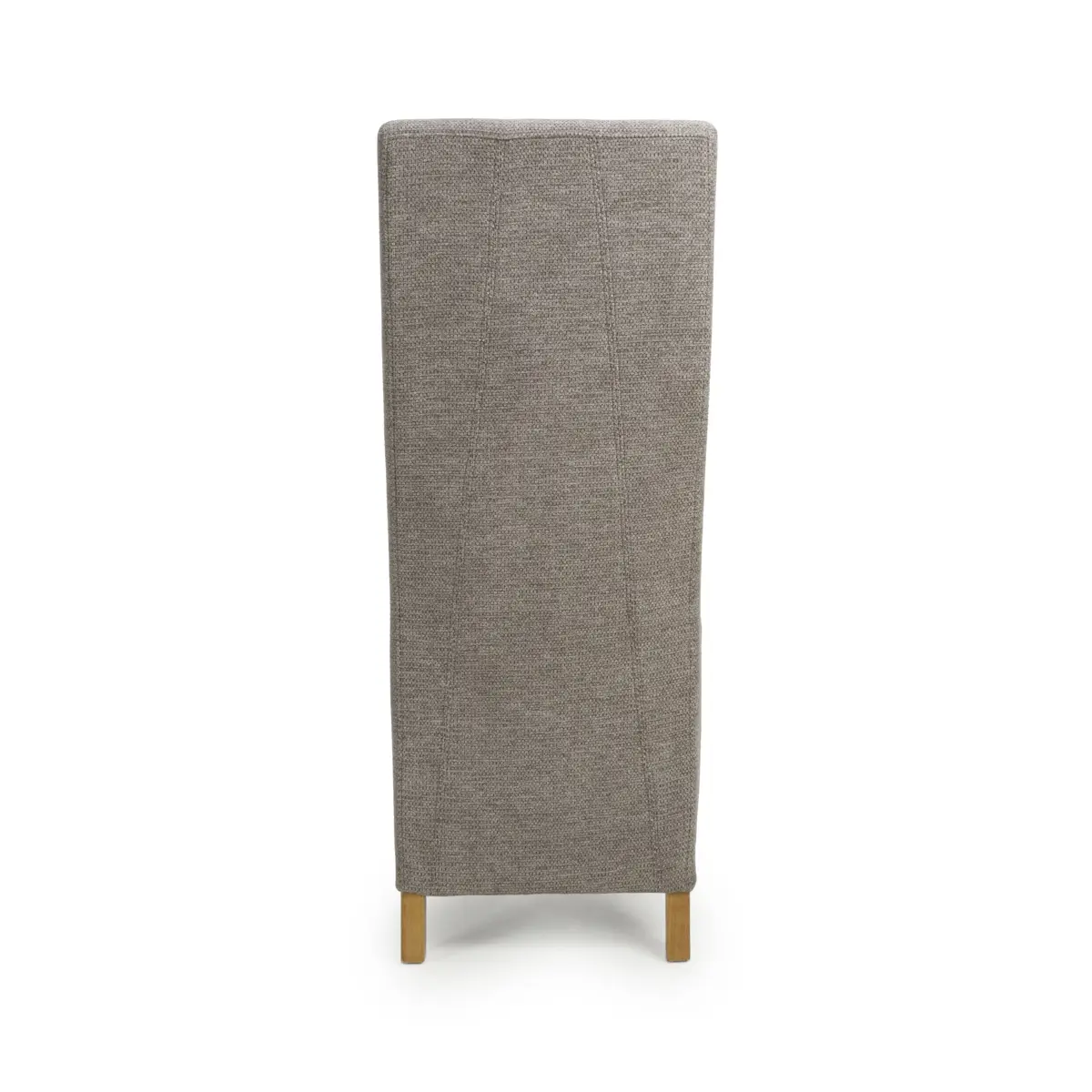 Experience the elegance of the Shankar Baxter Dining Chairs, featuring an elegant wave back design upholstered in fashionable mocha hexagonal weave fabric. This classic design adds a touch of sophistication to any dining setting.