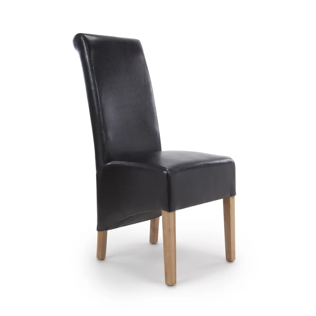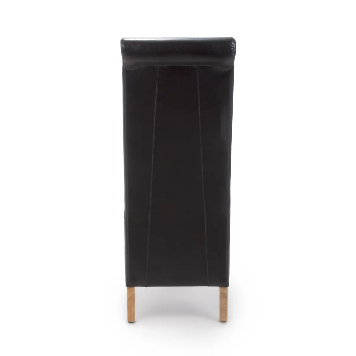 Elevate your dining experience with the classic roll back design of the Krista Dining Chair, exuding sophistication and grace. Upholstered in luxurious black bonded leather, it adds a touch of timeless elegance to any dining setting.