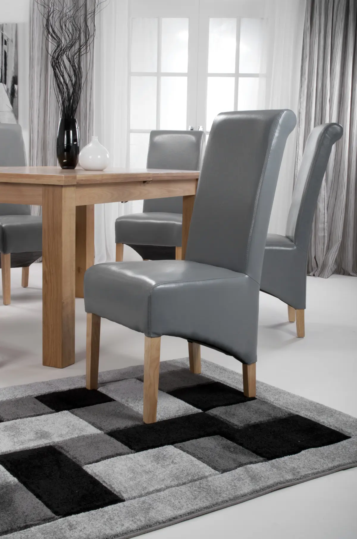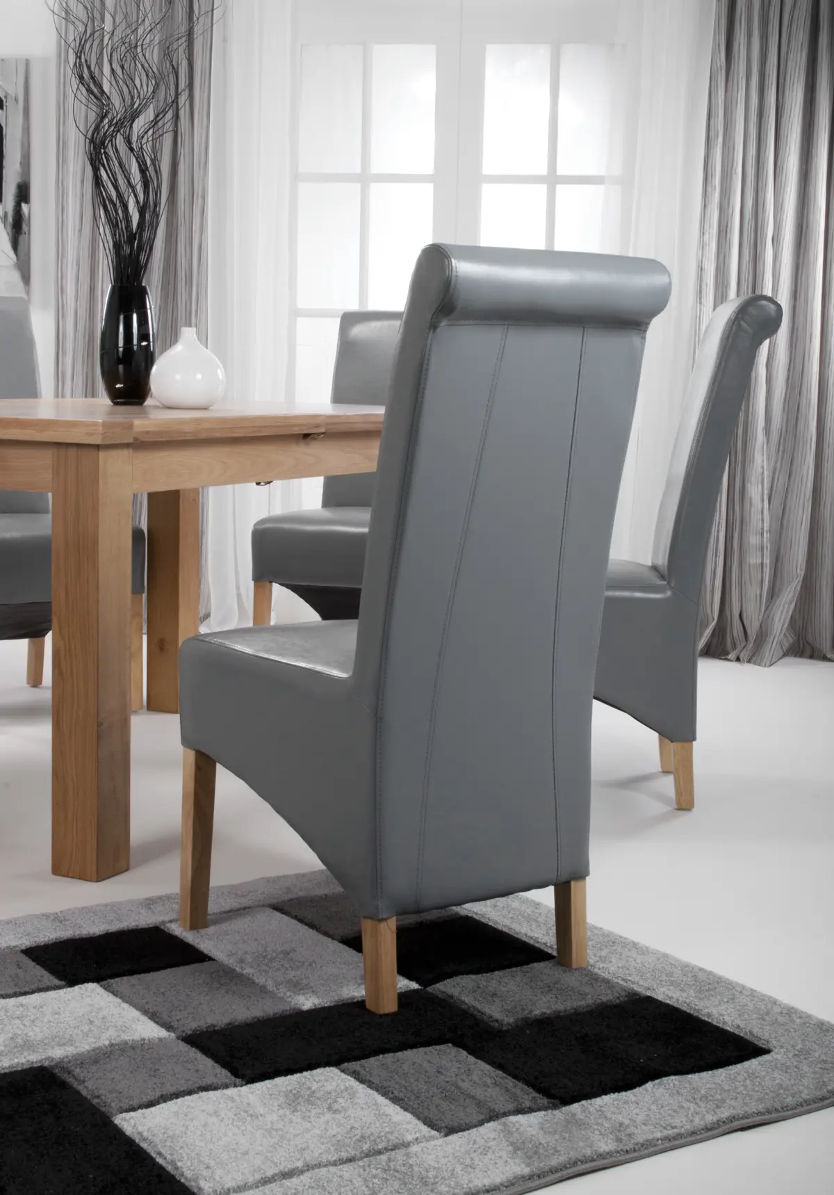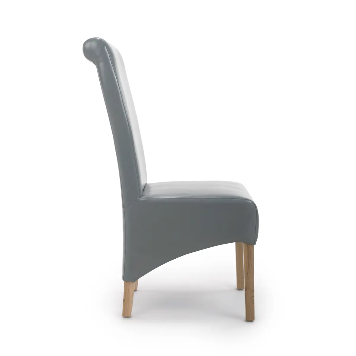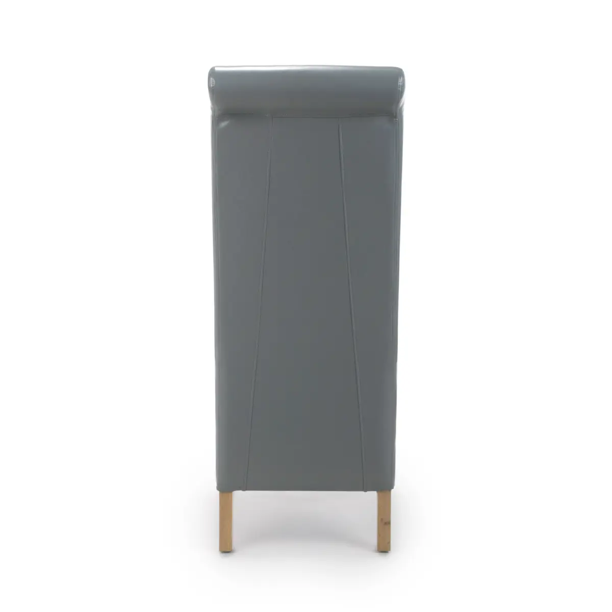 Arriving fully assembled, the Krista Roll Back Bonded Leather Grey Dining Chair is ready to grace your dining area with effortless charm and sophistication. Sold in convenient boxes of 2, it's the perfect solution for completing your dining set with ease and style.
