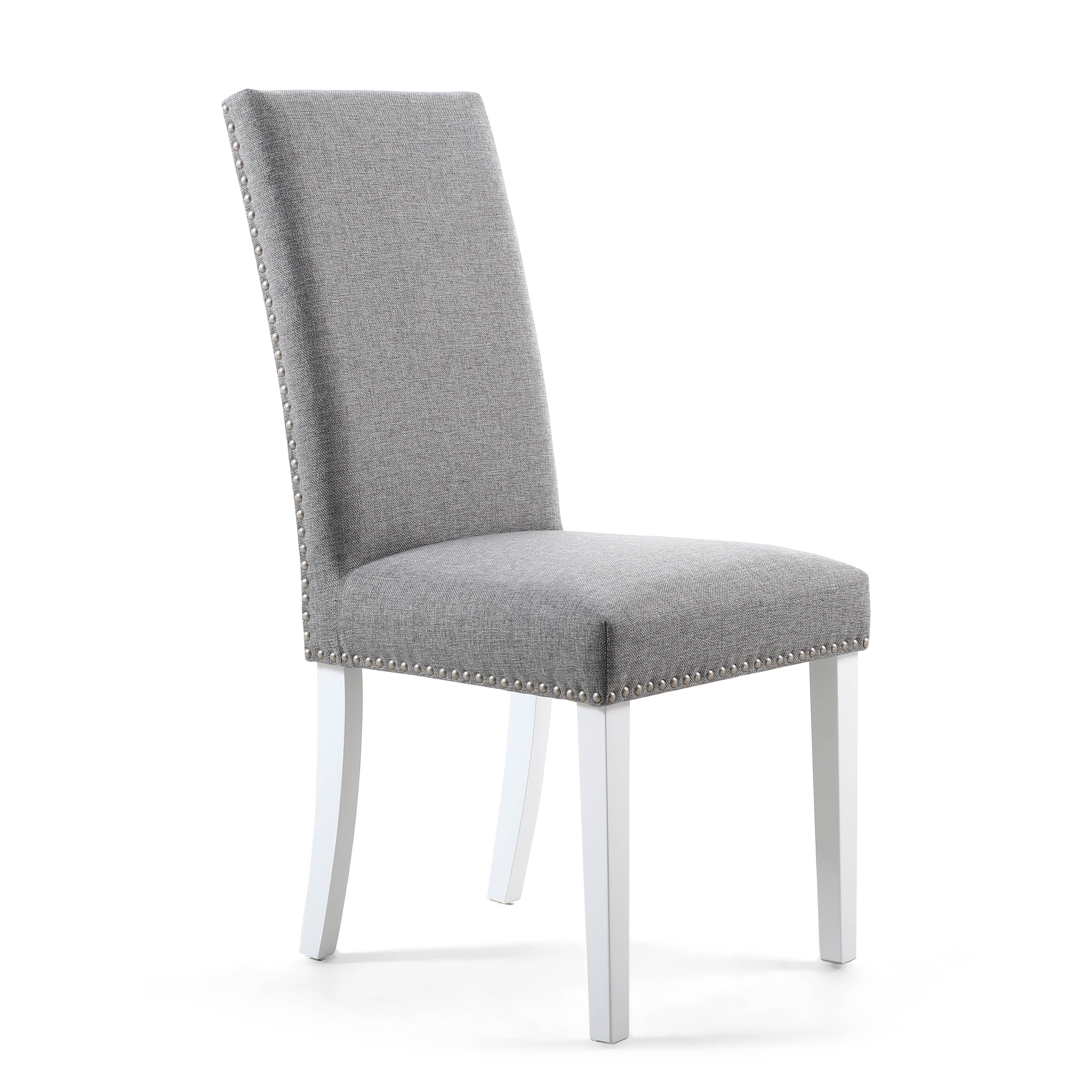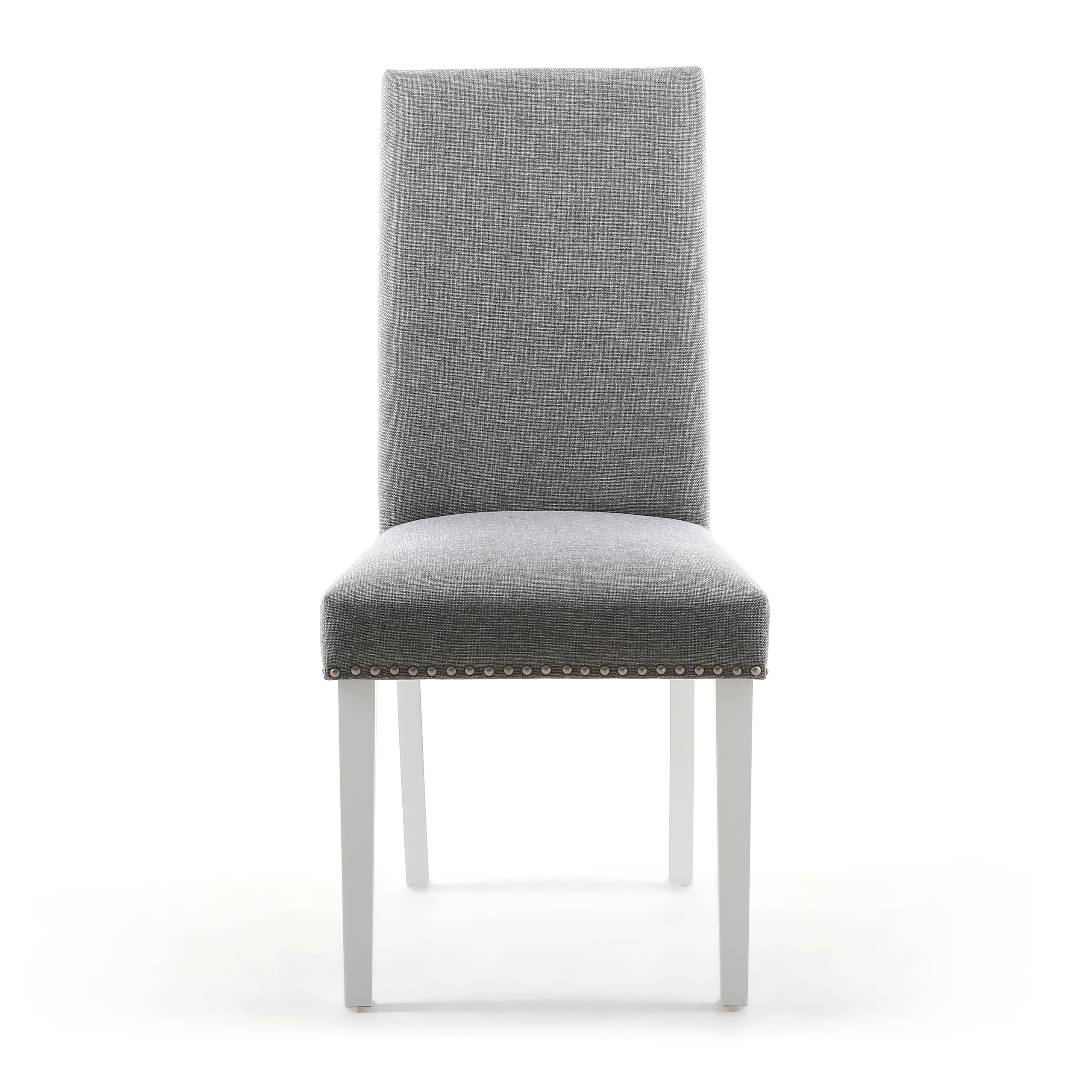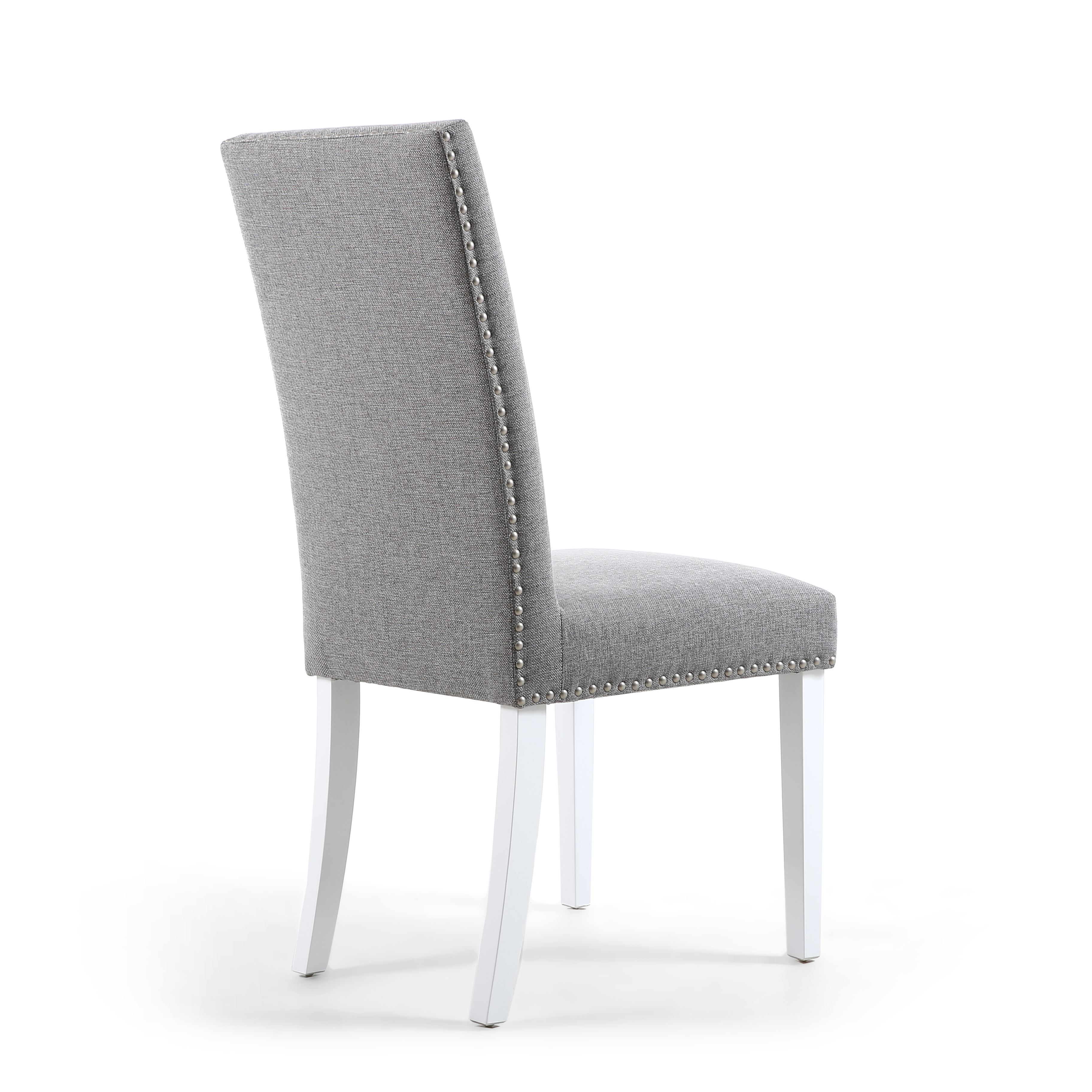 Shankar Randall Stud Detail Linen Effect Silver Grey Dining Chairs with White Legs Set of 2
