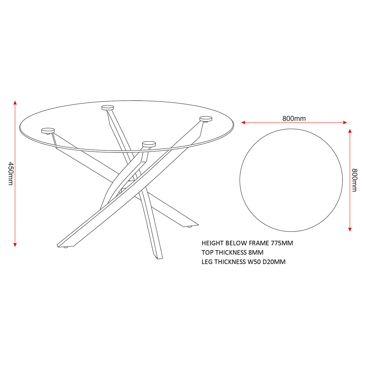 Assembled Dimensions: Width: 80 x Depth: 80 x Height: 45(cm)