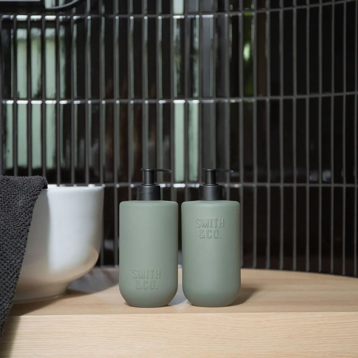 Cleanse and refresh with the Smith & Co. Wild Berries & Amber Hand & Body Wash in a refillable glass hand pump by The Aromatherapy Co., a luxurious daily essential enriched with natural oils. Infused with Kakadu Plum Oil and Marula Oil, this gentle wash nourishes the skin while releasing a captivating fragrance that contrasts bright florals with deep, woody undertones. Refill pouches also available.