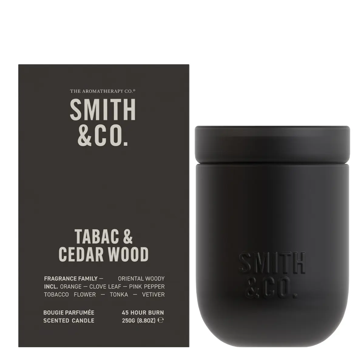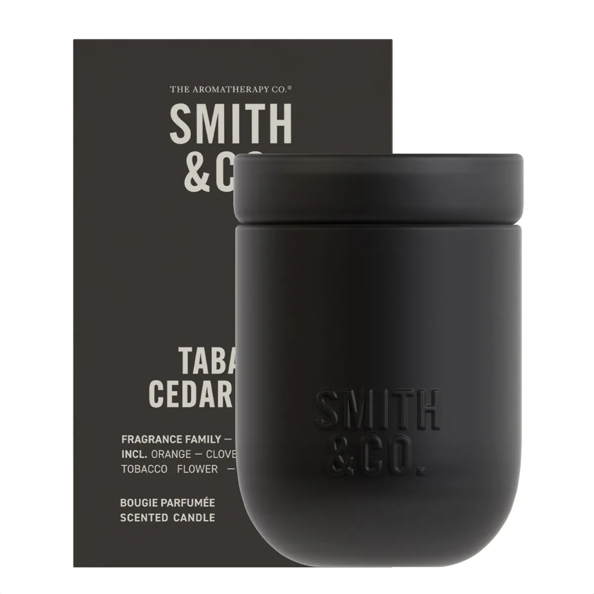Set the mood with the Smith & Co. Tabac & Cedarwood Candle by The Aromatherapy Co., a refined home fragrance crafted with care to elevate everyday spaces. Infused with an artisanal blend of spiced orange, black suede and tanned leather layered on tobacco flower and resinous tonka, this candle brings warmth and sophistication to any room.