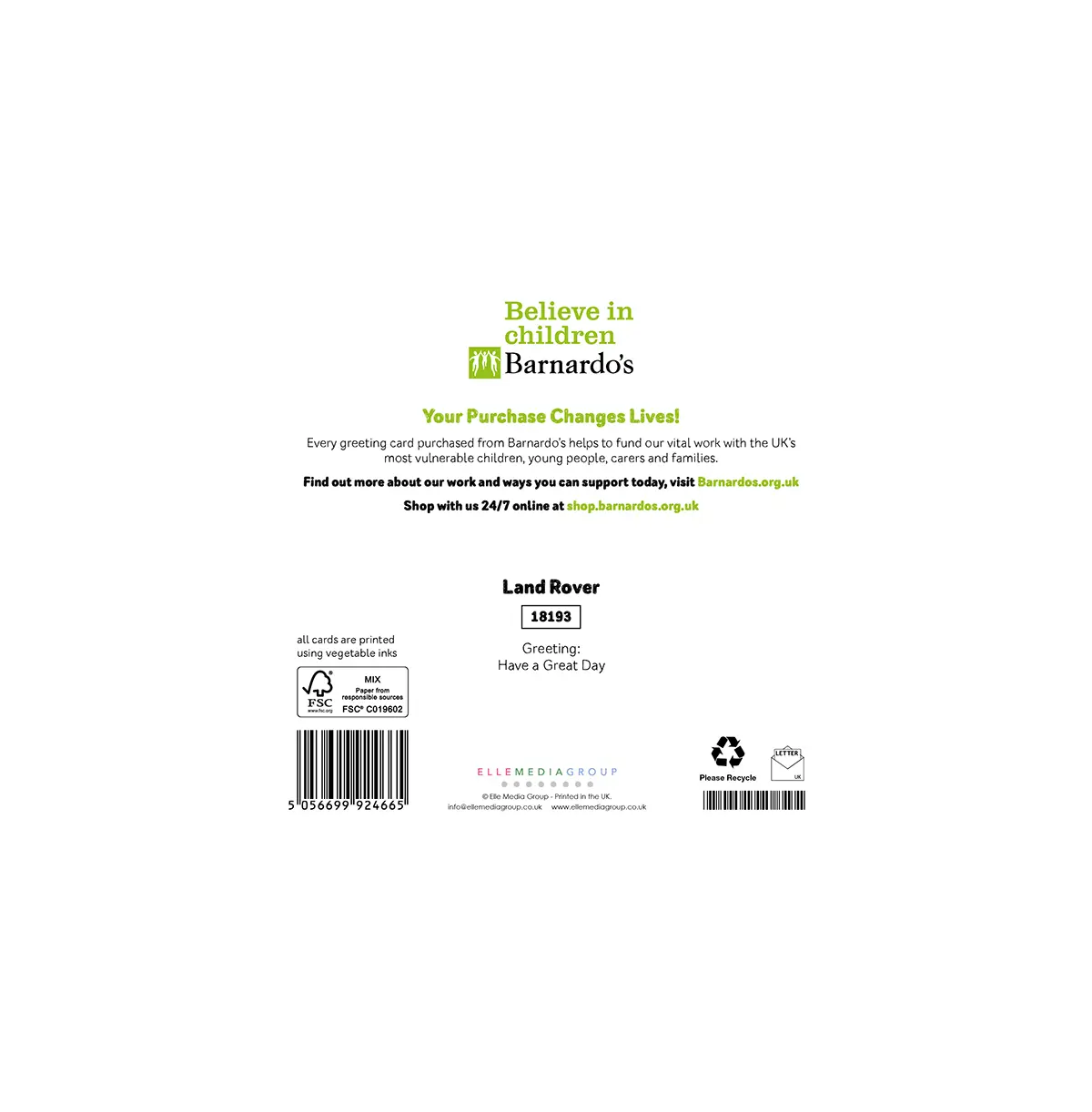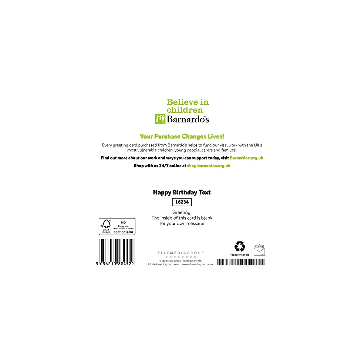 We offer a 60-day no-quibble returns policy. See Barnardo’s Returns Policy for full details.