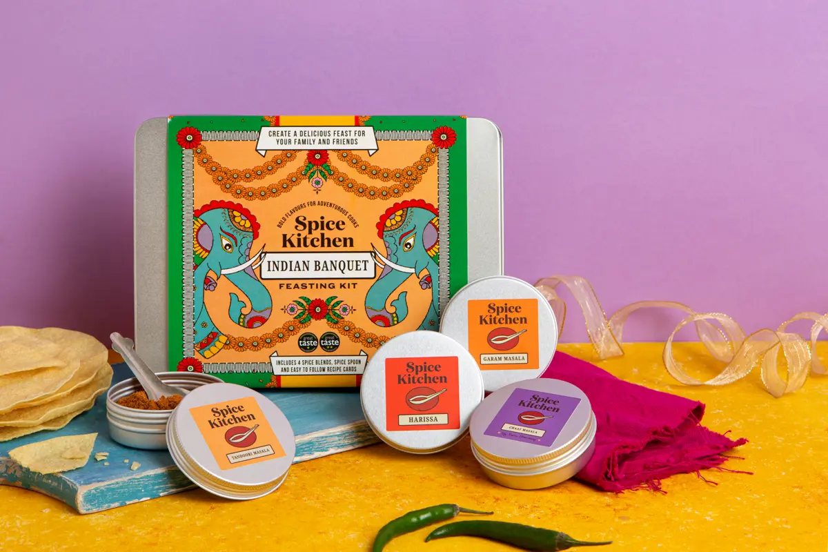 Bring the rich and vibrant flavours of India into your home with the Spice Kitchen Indian Banquet Feasting Tin. Made with care, tradition, and a love for flavour, this set has everything you need to create an unforgettable Indian feast for friends and family.
