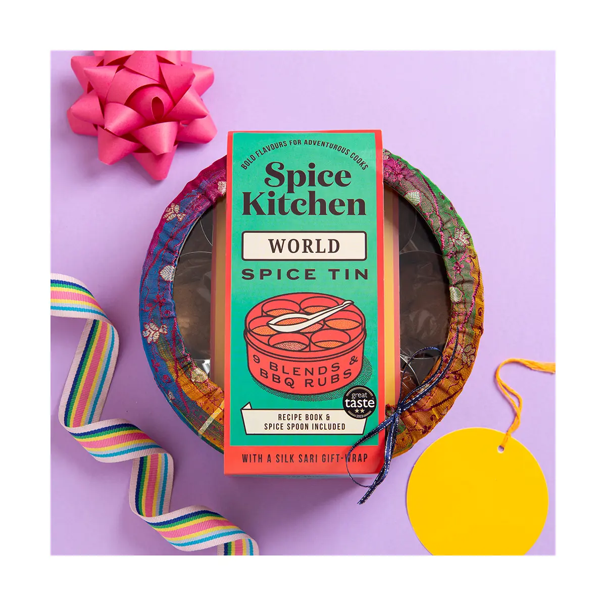 Spice Kitchen World Spice Tin & Silk Sari Wrap