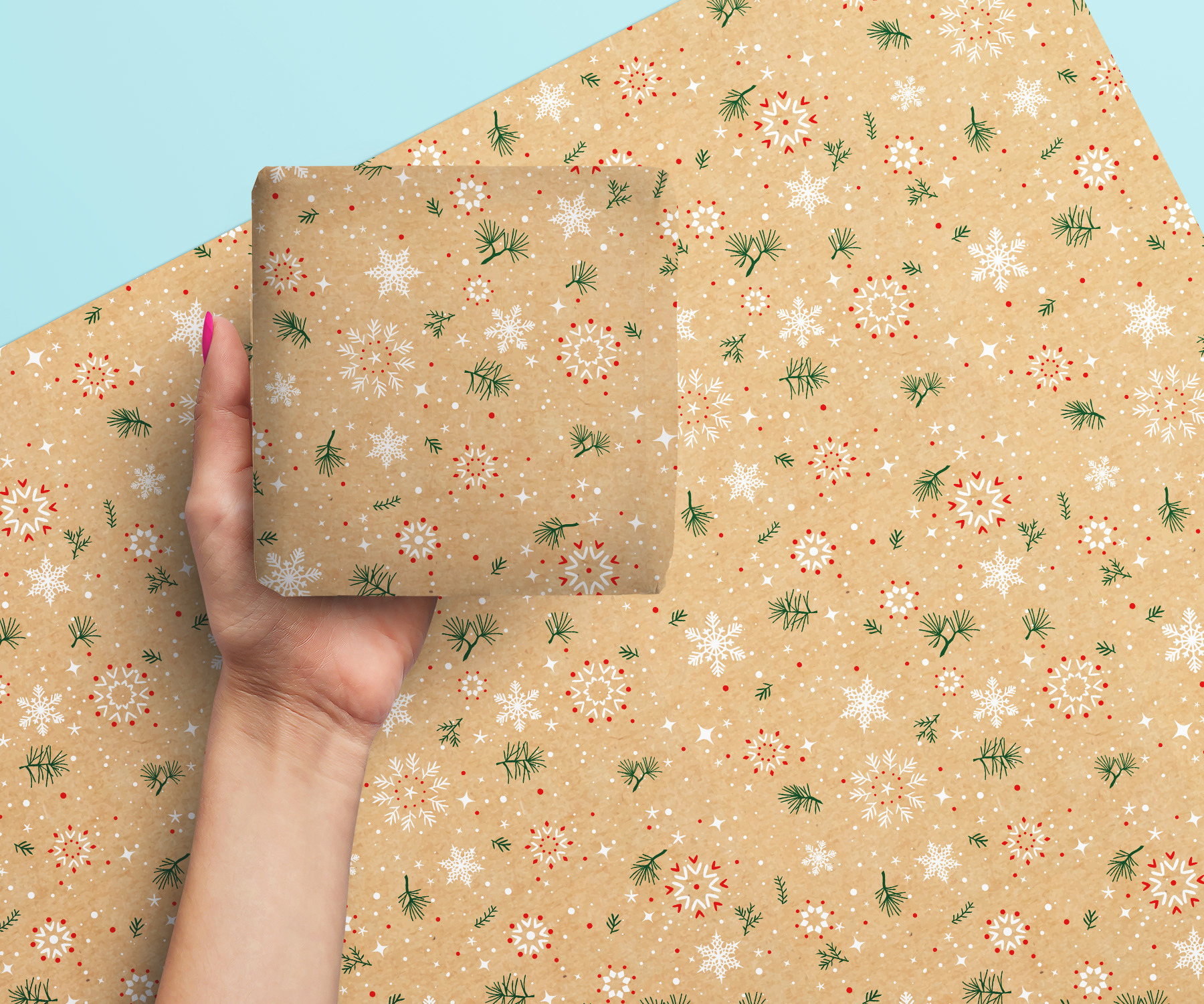 Stag and Snowflake Giftwrap Wrapping Paper - 6 Sheets & Assorted Tags
