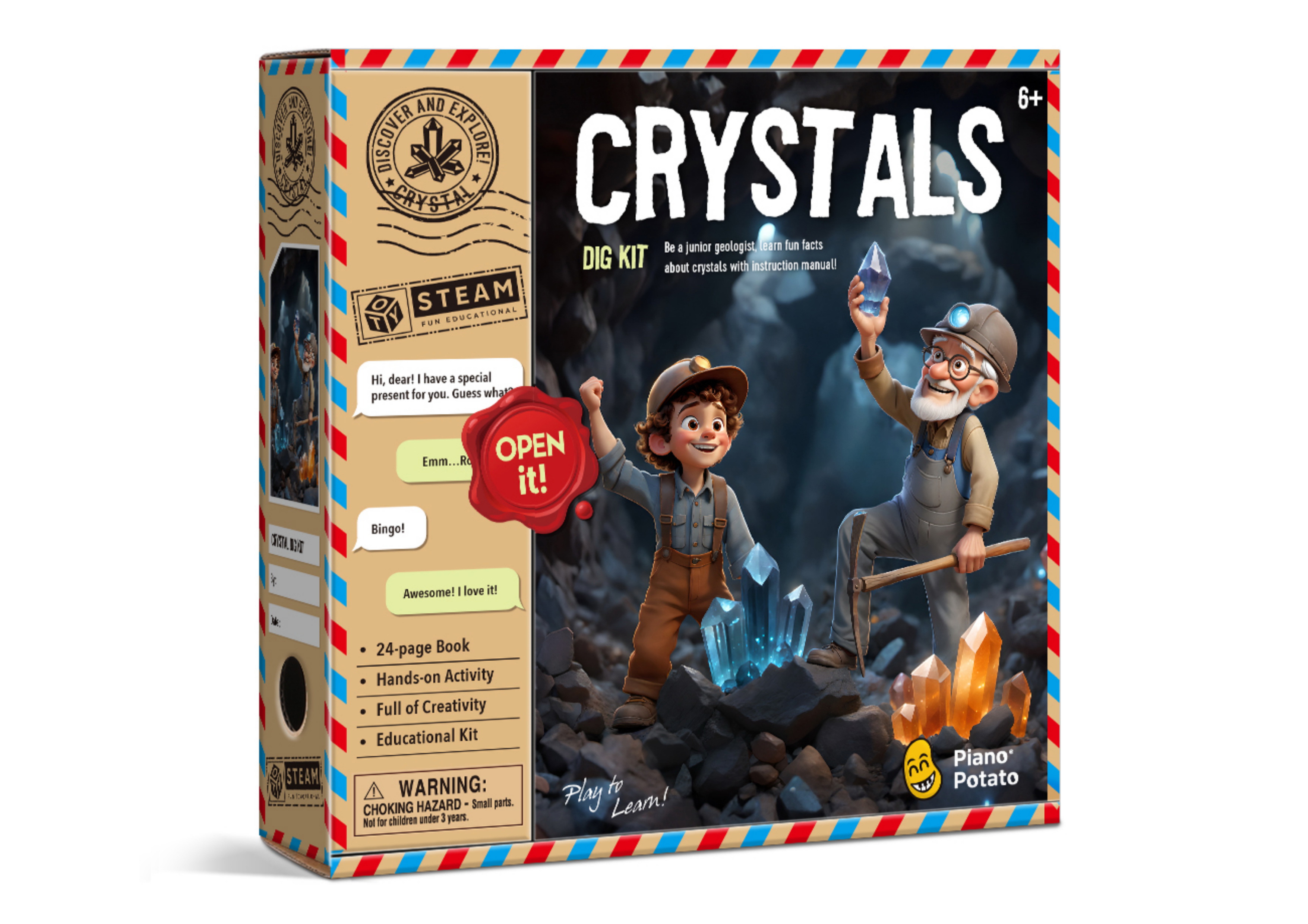 Discover the wonder of Crystals and Gems with this STEAM Crystal Dig Out Kit. Featuring all the tools required to dig and discover, with an included guide book to encourage further learning and education.