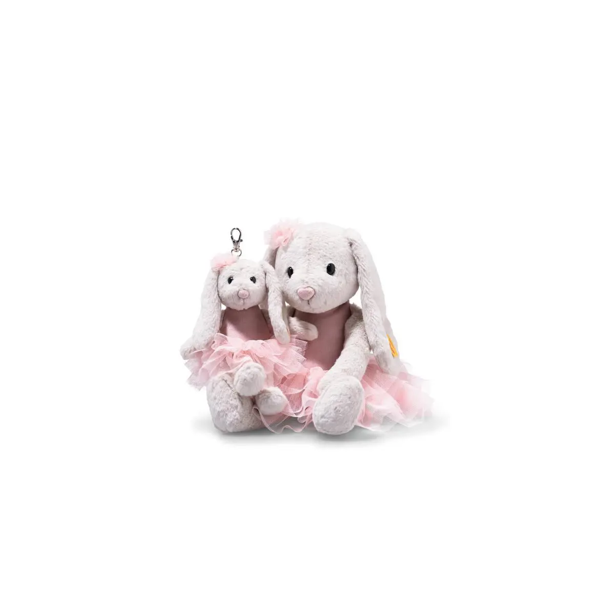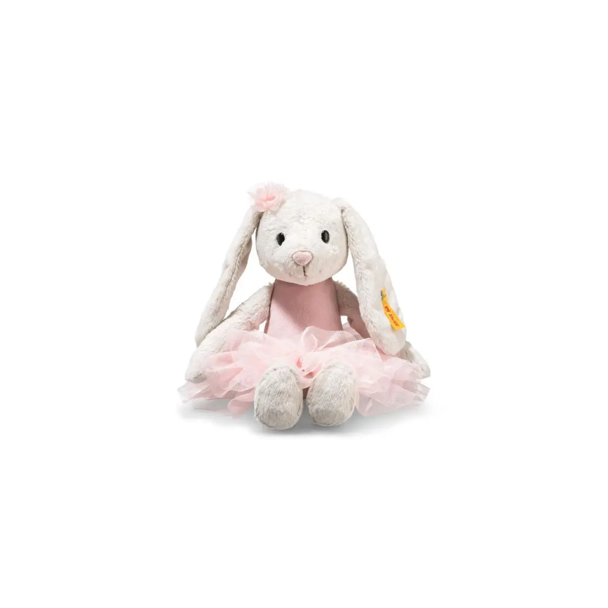 Meet Steiff Hoppie Ballet Bunny, a graceful little prima ballerina ready to twirl her way into your heart. Dressed in a beautiful pink ballerina outfit with a soft boa body, delicate tulle head accessory and matching tutu, Hoppie brings charm, elegance and a touch of magic to playtime and cuddles.