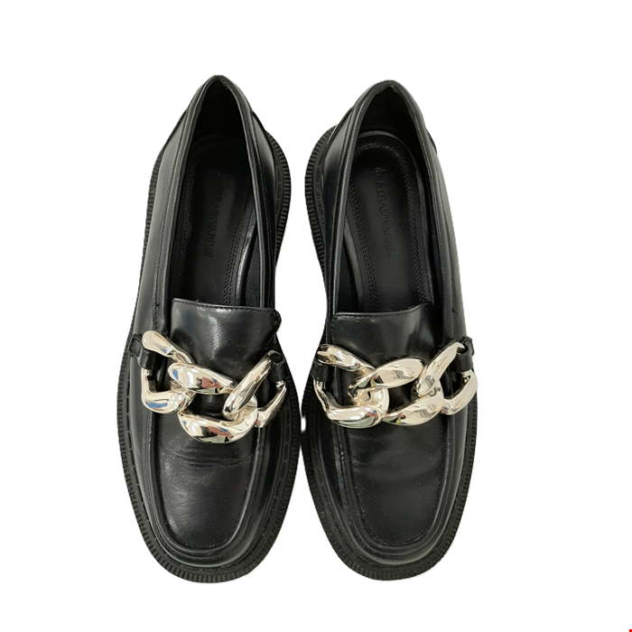 Stradivarius Women's Black Faux Leather Chunky Loafers – Size UK 3.5 – Pre-Loved Condition